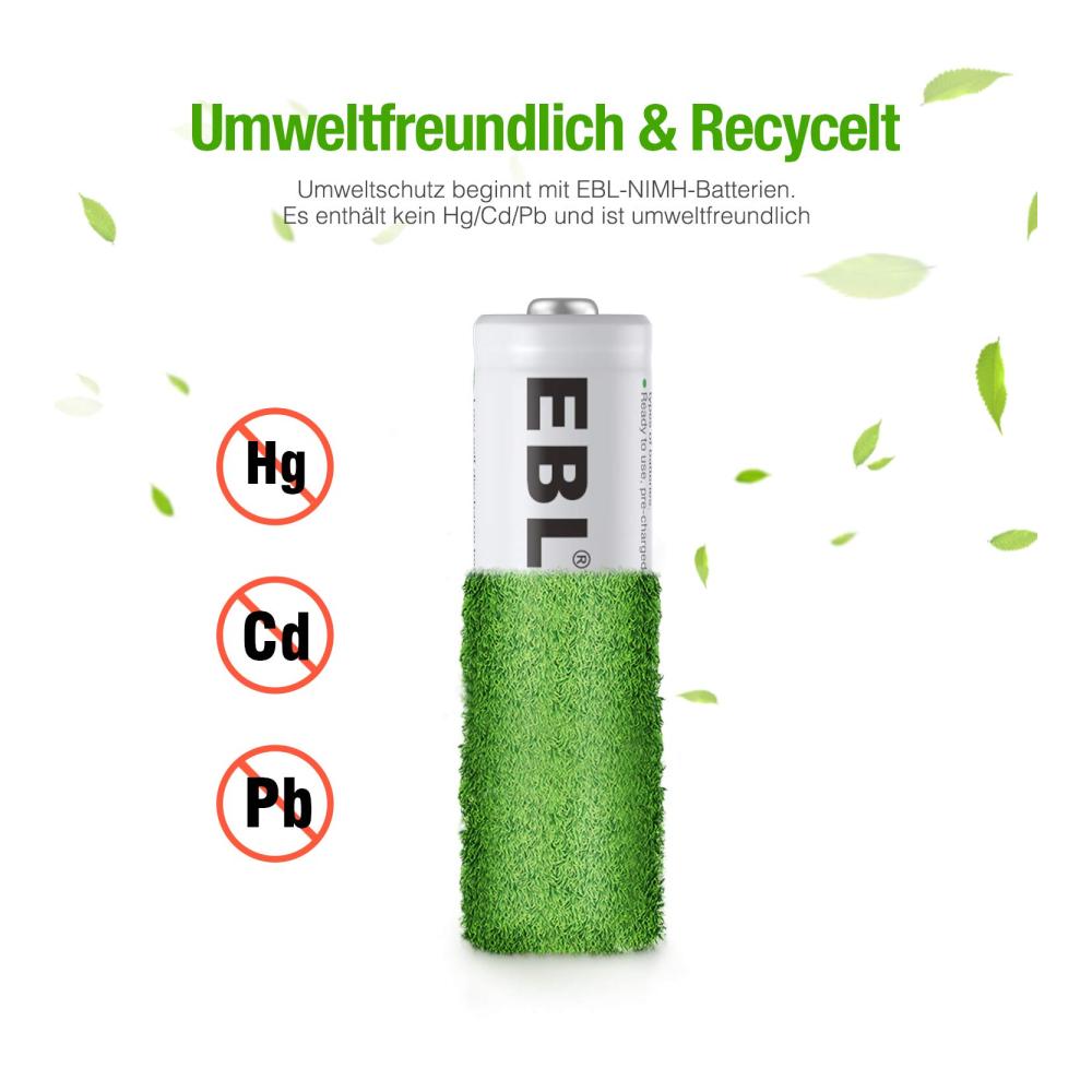 EBL AA und AAA wiederaufladbare Akkus:Sehr geringe Selbstentladung kann nach 3 Jahren ohne Verwendung noch 80% Leistung halten; Umweltfreundlich, enthalten keine Verschmutzung, leicht zu recyceln