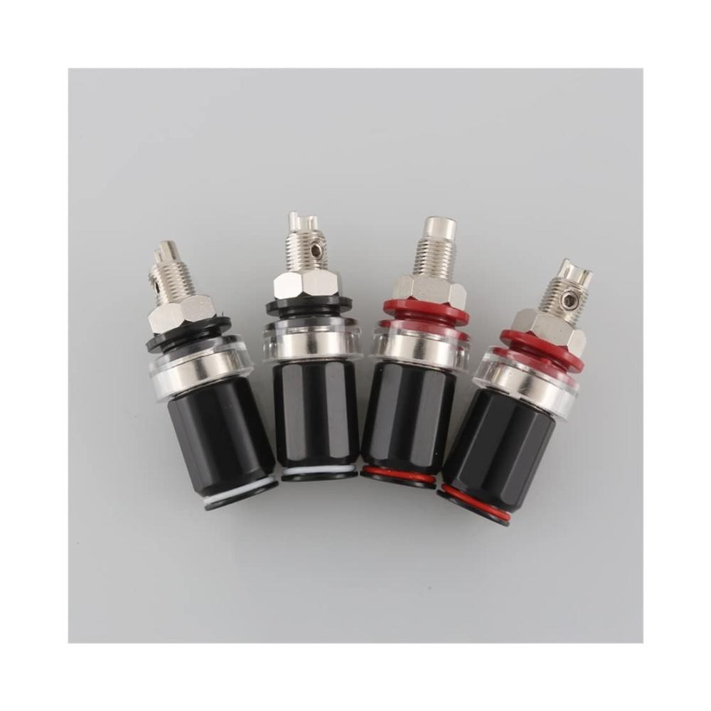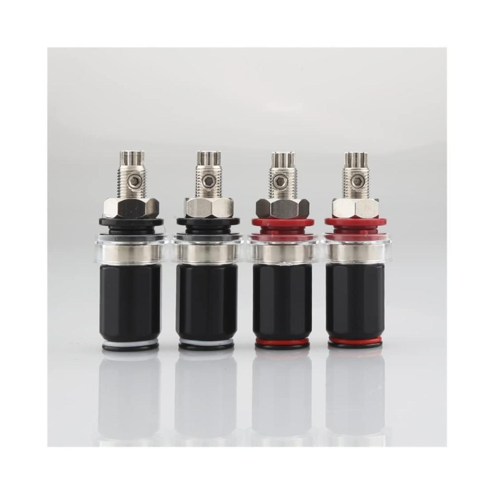 BeRbo4 STÜCKE Rhodinierter HIFI-Verstärker-Lautsprecheranschluss Polklemmenbuchse 45 mmDer Außendurchmesser beträgt 8 mm. Geeignet für 1,5 mm — 7 mm MDF-Holz oder Amp-RückwandGehäuse;Nebelschwarze eutektische KupferlegierungIsolierung aus Nylon [rot/schwarz] und Polycarbonat [klar].Anschlüsse: SchraubenverriegelungKennzeichnung: Rot, WeißIn hergestelltLieferumfang: 4 Stück