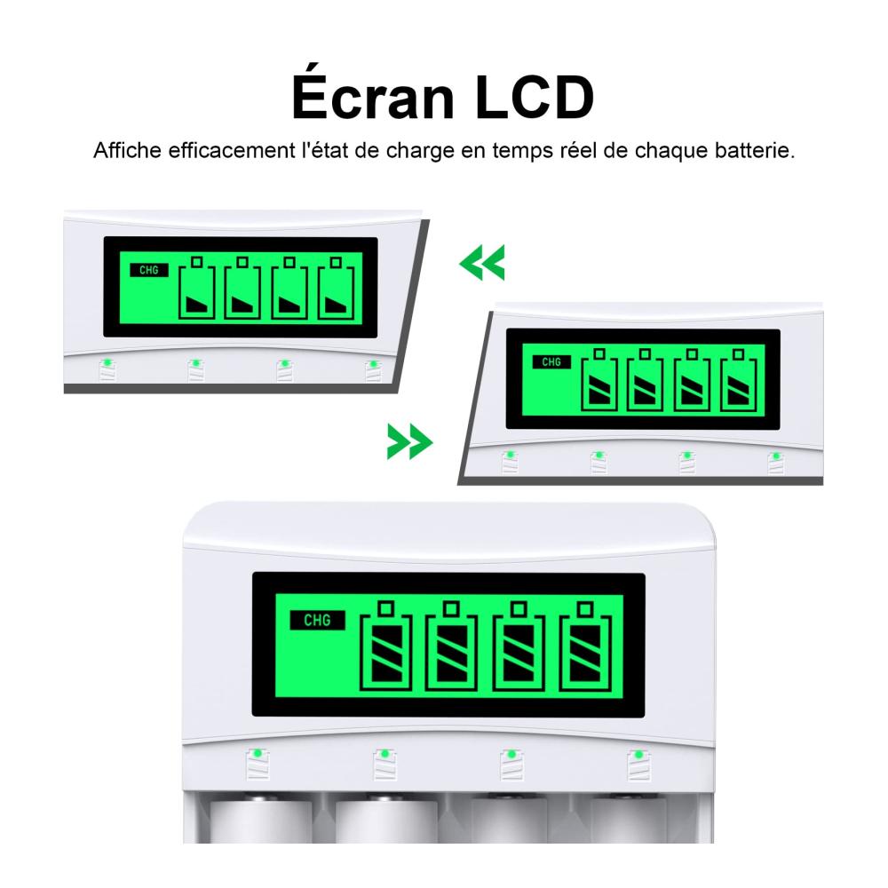 【Akku AAA mit Ladegerät】: Mit unabhängigen Ladekanälen, 4 Slots, kann 1/2/3/4 Stück Ni-MH Ni-CD AA AAA wiederaufladbare Batterien frei aufladen. Nach voll, Erhaltungsladung Modus wird dazu beitragen, die Kapazität der Batterie zu voll.