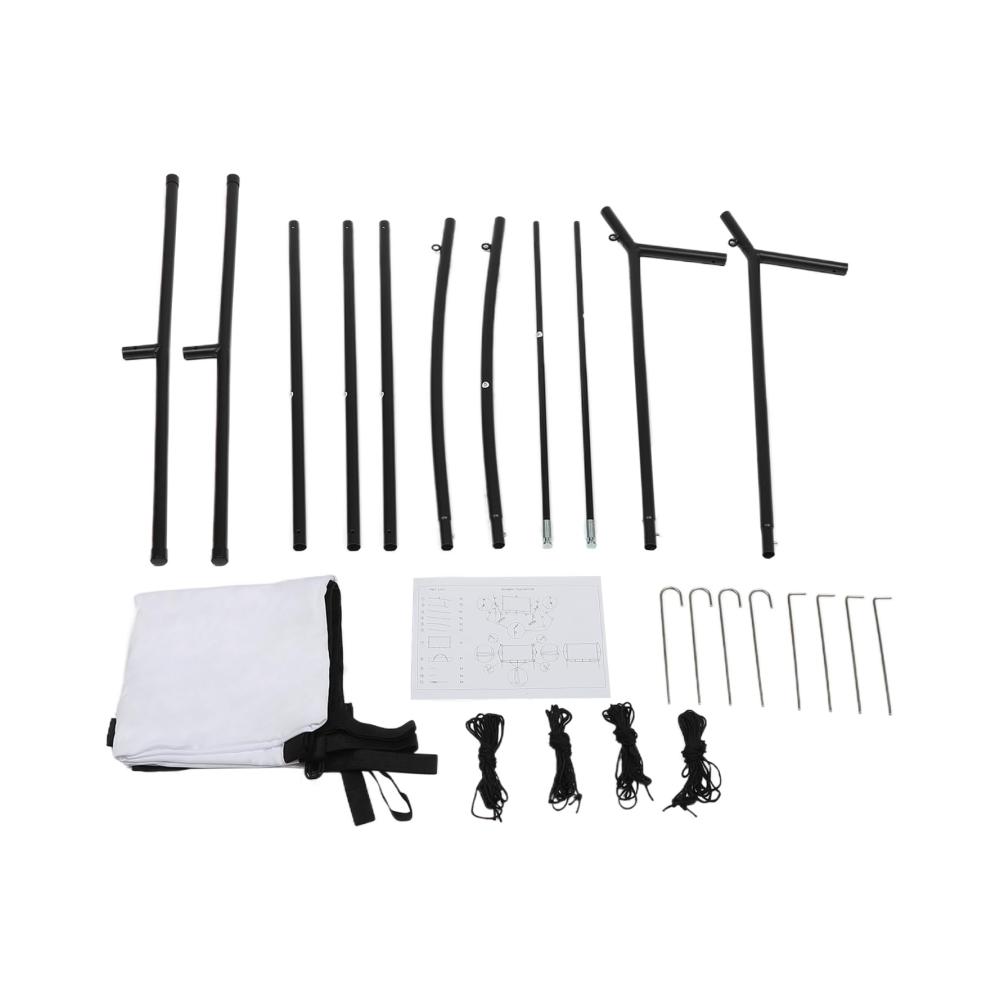 Solide Struktur: Der Eisenrahmen bietet ein stabiles und zuverlässiges Stützsystem für den Bildschirm und eine Reihe von Seilen und Spikes können leicht an den Ecken des Rahmens befestigt werden, um sicherzustellen, dass es während des Gebrauchs an Ort und Stelle bleibt und Wackeln oder Schütteln reduziert, die Bildqualität beeinträchtigen könnten. Seine rostfesten Eigenschaften sorgen dafür, dass es sein schlankes Aussehen über Jahre behält, mit weniger unschönen Verfärbungen oder Korrosion.