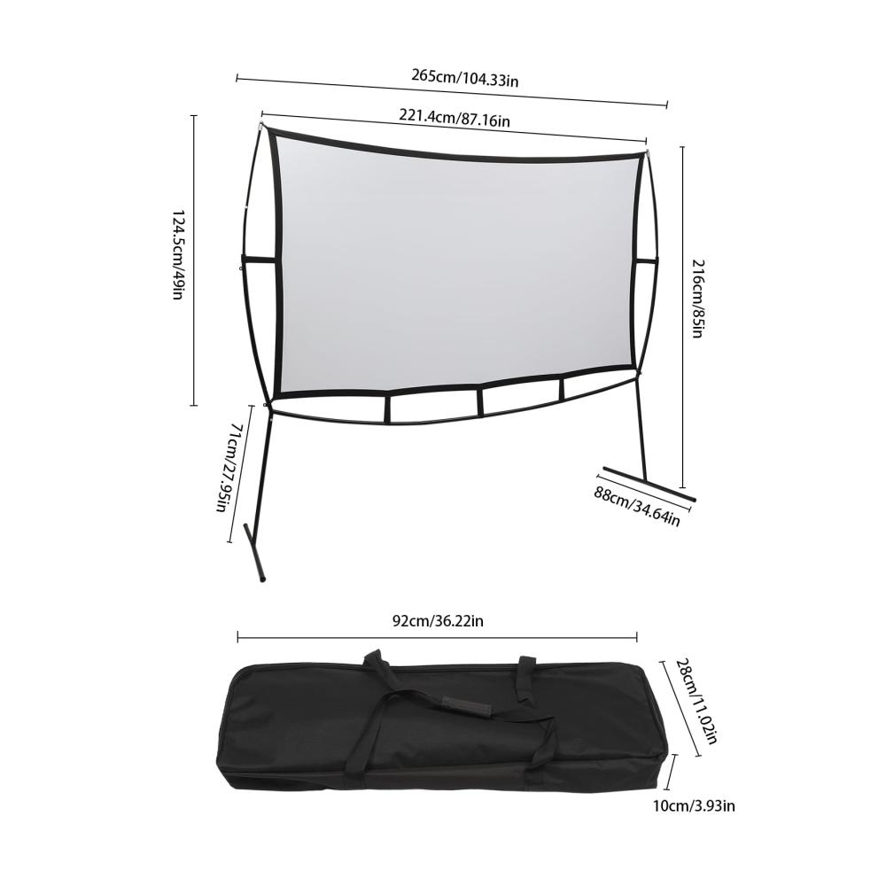 Geeignete Größe: Die 100-Zoll-Projektorleinwand und der 160° breite Betrachtungswinkel ermöglichen ein inklusiveres Seherlebnis und stellen sicher, dass jedes Detail aus jedem Winkel klar und leicht zu sehen ist, was es für jeden einfacher macht, die Show zu genießen, ohne sich überfüllt zu fühlen. Es ist kompatibel mit 16:9 Projektoren.