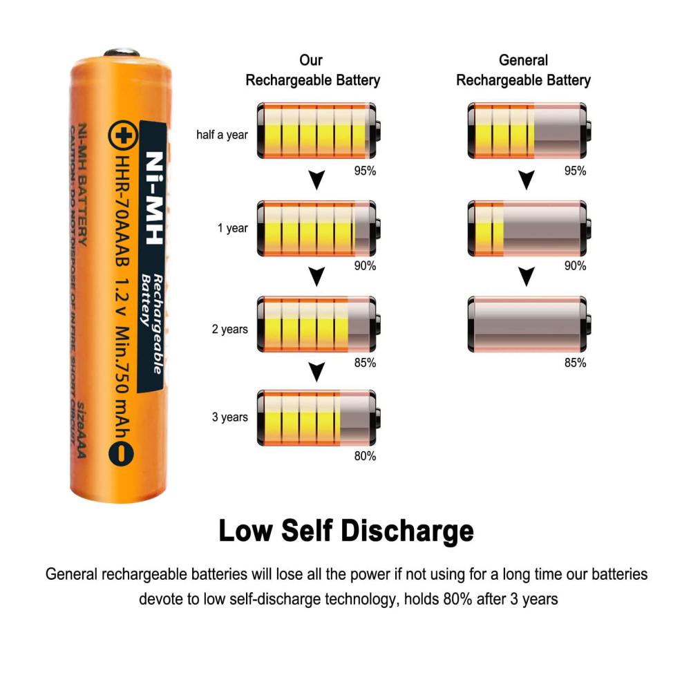 ✔【Aufladbare Batterie】NI-MH Schnurlostelefon Batterie kann wiederverwendet werden, wiederaufladbar bis zu 2000 Mal. Geringe Selbstentladungstechnologie und hochwertige Batterien, die die Lebensdauer der Batterie verlängern können, haben eine ziemlich niedrige Selbstentladung, die Ihre Kosten reduzieren kann, und sind die ideale Alternative zu Einwegbatterien