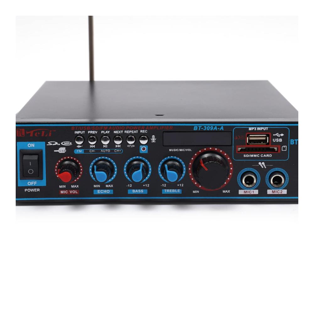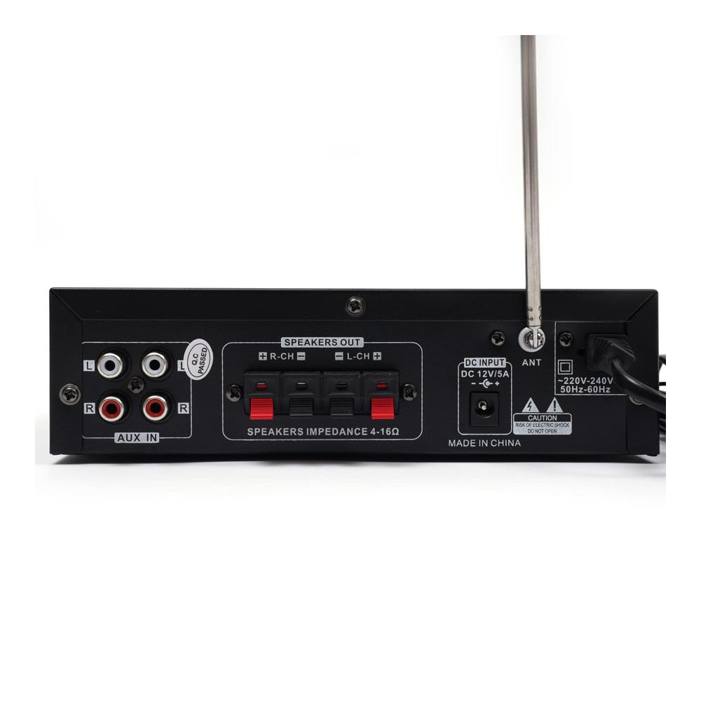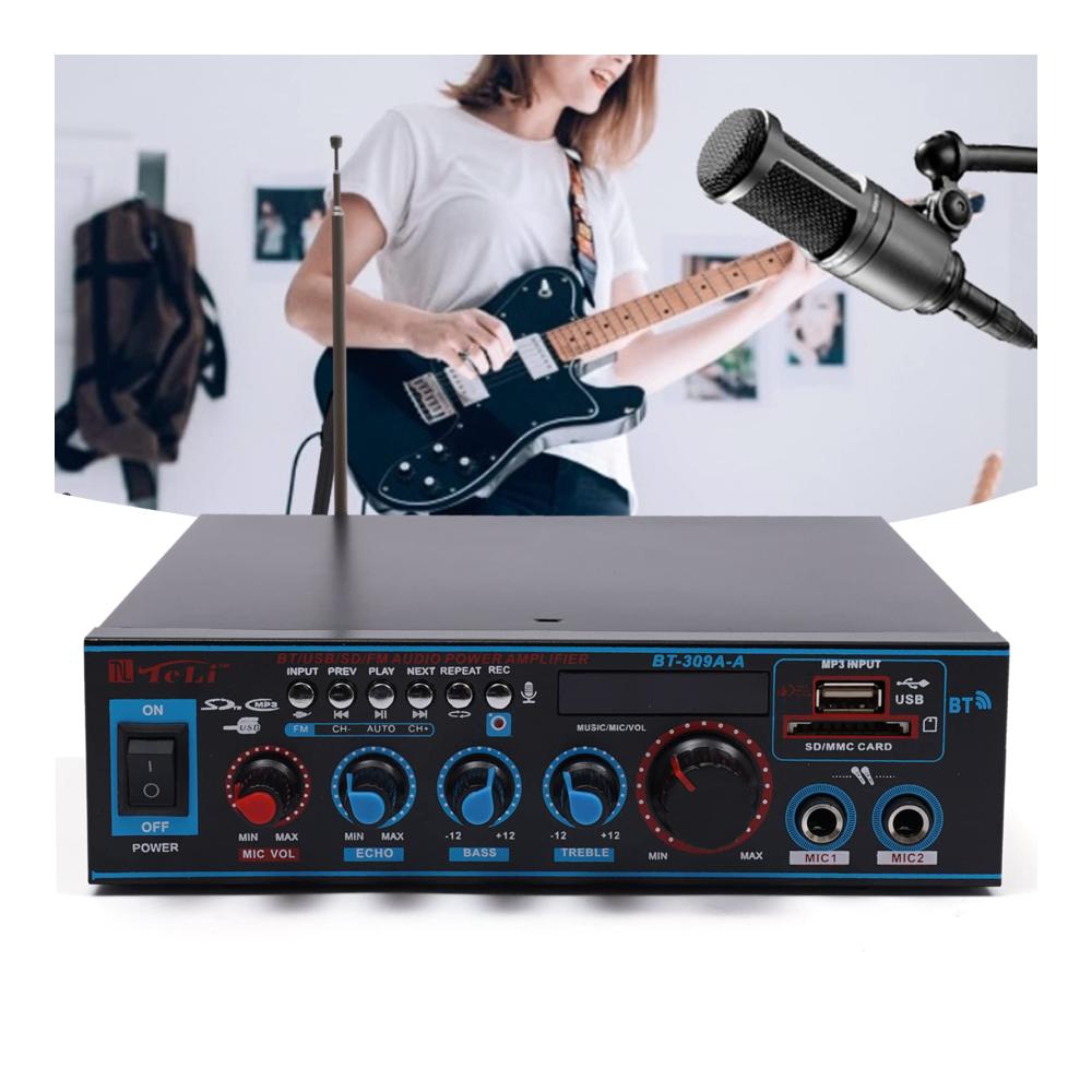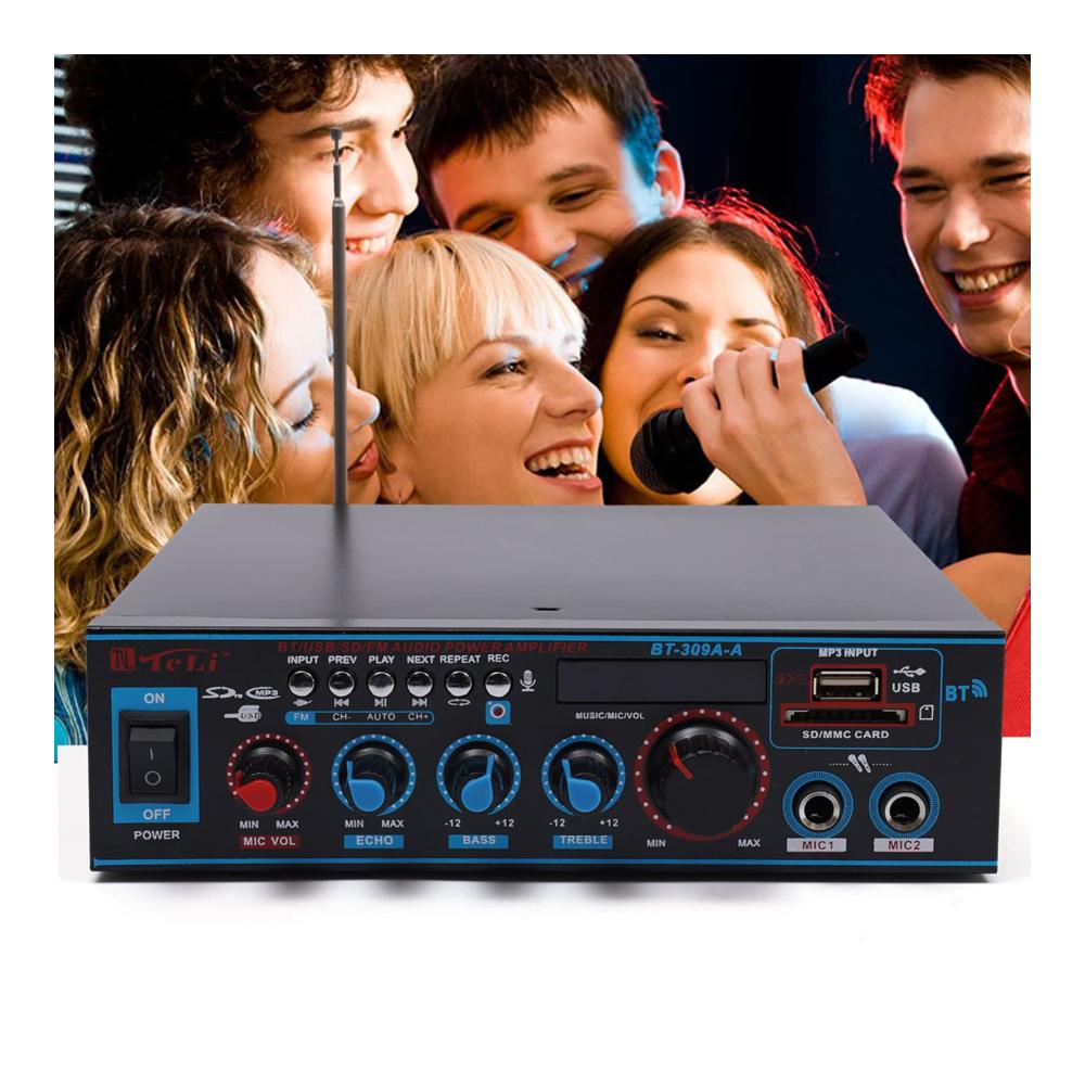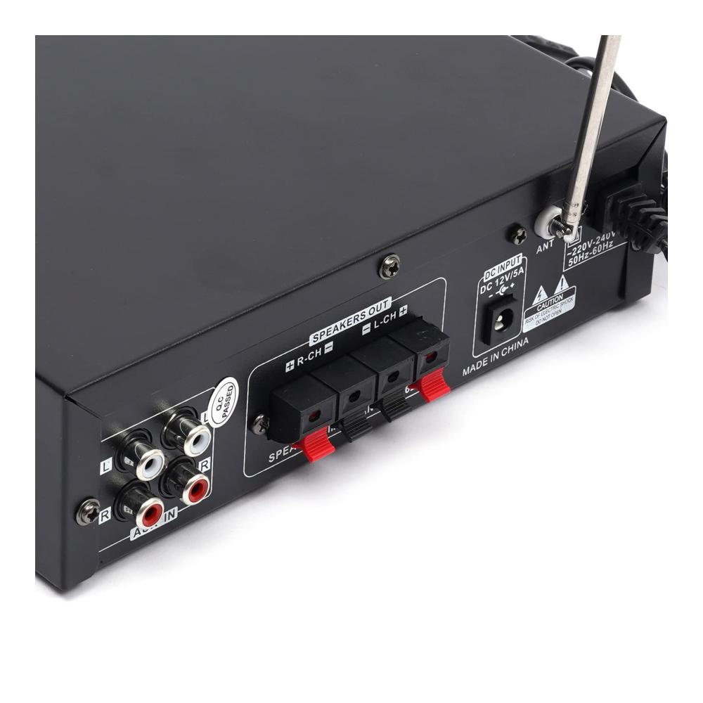 Unser Mini-Hifi-Audioverstärker bietet professionellen Musikgenuss für Zuhause oder unterwegs. Mit Unterstützung für SD-Karten, U-Disk, Bluetooth und MP3-Wiedergabe können Sie Ihre Lieblingsmusik überall genießen. Mit Höhen- und Tiefenregelung für optimalen Klang. Zwei Mikrofoneingänge ermöglichen Karaoke-Spaß. Leicht zu bedienende Tasten und eine Vielzahl von Anschlüssen machen diesen Verstärker vielseitig einsetzbar. Inklusive Fernbedienung und Bedienungsanleitung.