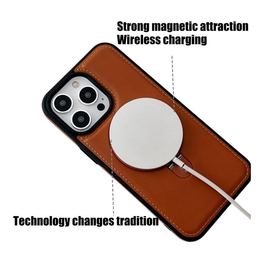 💖📲【Wireless Charging】——Luxurious Leather Invisible Stand for iPhone Case seamlessly integrates with magnetic ring for convenient and efficient wireless charging.