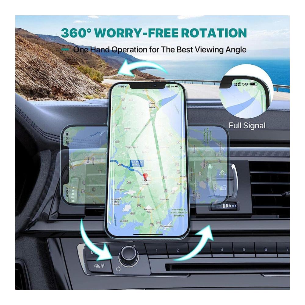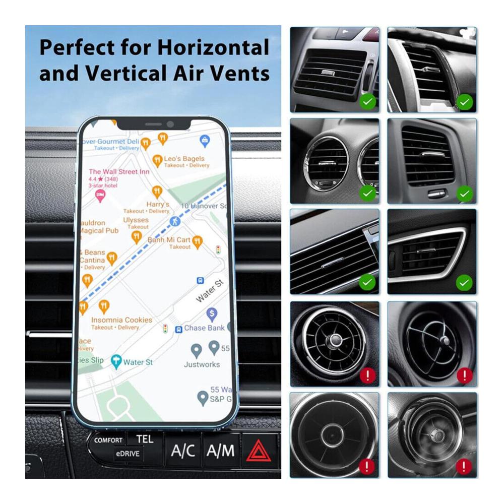تHalten Sie das Telefon fest: Halten Sie Ihr Telefon während der Fahrt sicher mit unserer magnetischen Autohalterung. Sein Metallhakenverschluss hält es an den Lüftungsschlitzen im Auto und verhindert so, dass es bei holprigen Fahrten verloren geht.