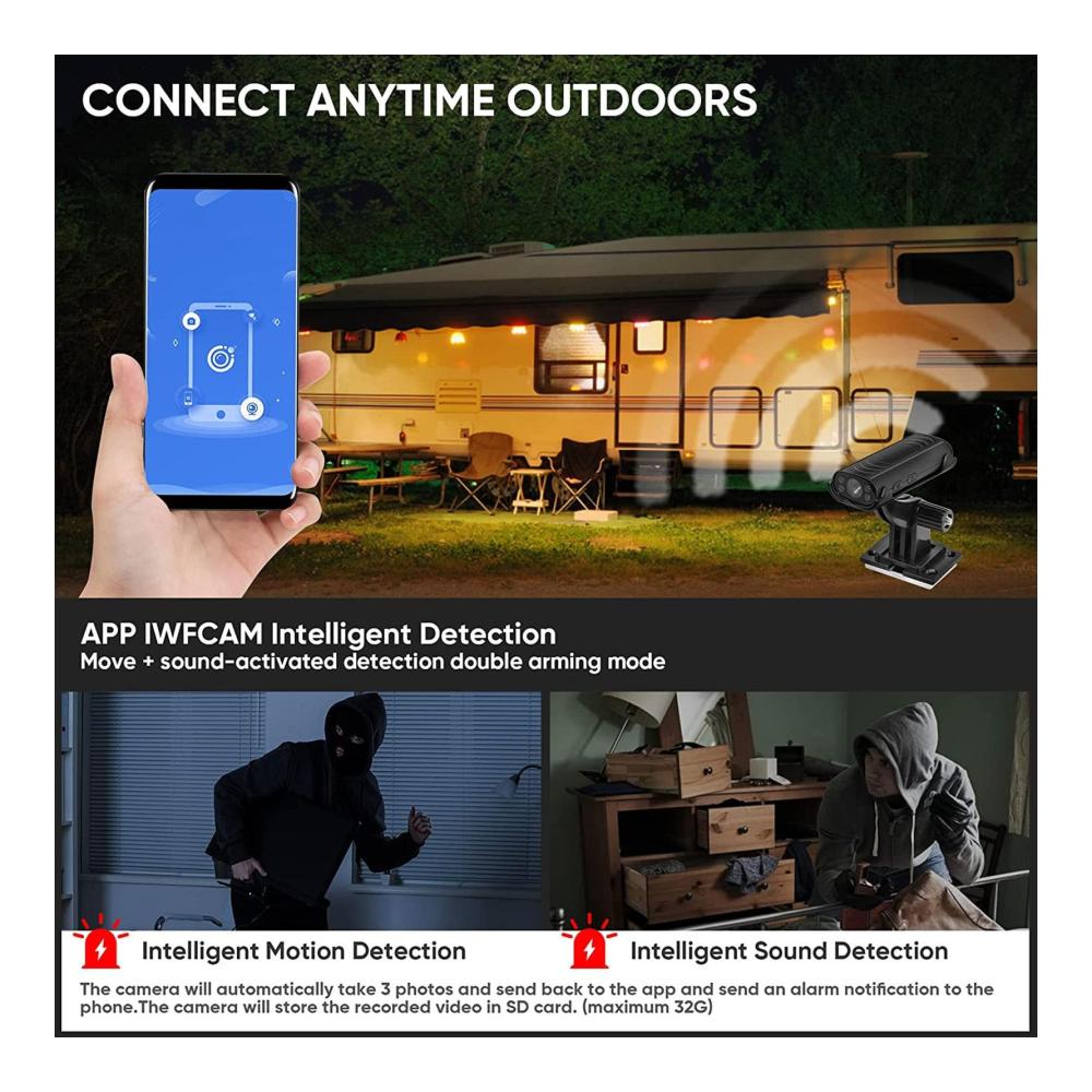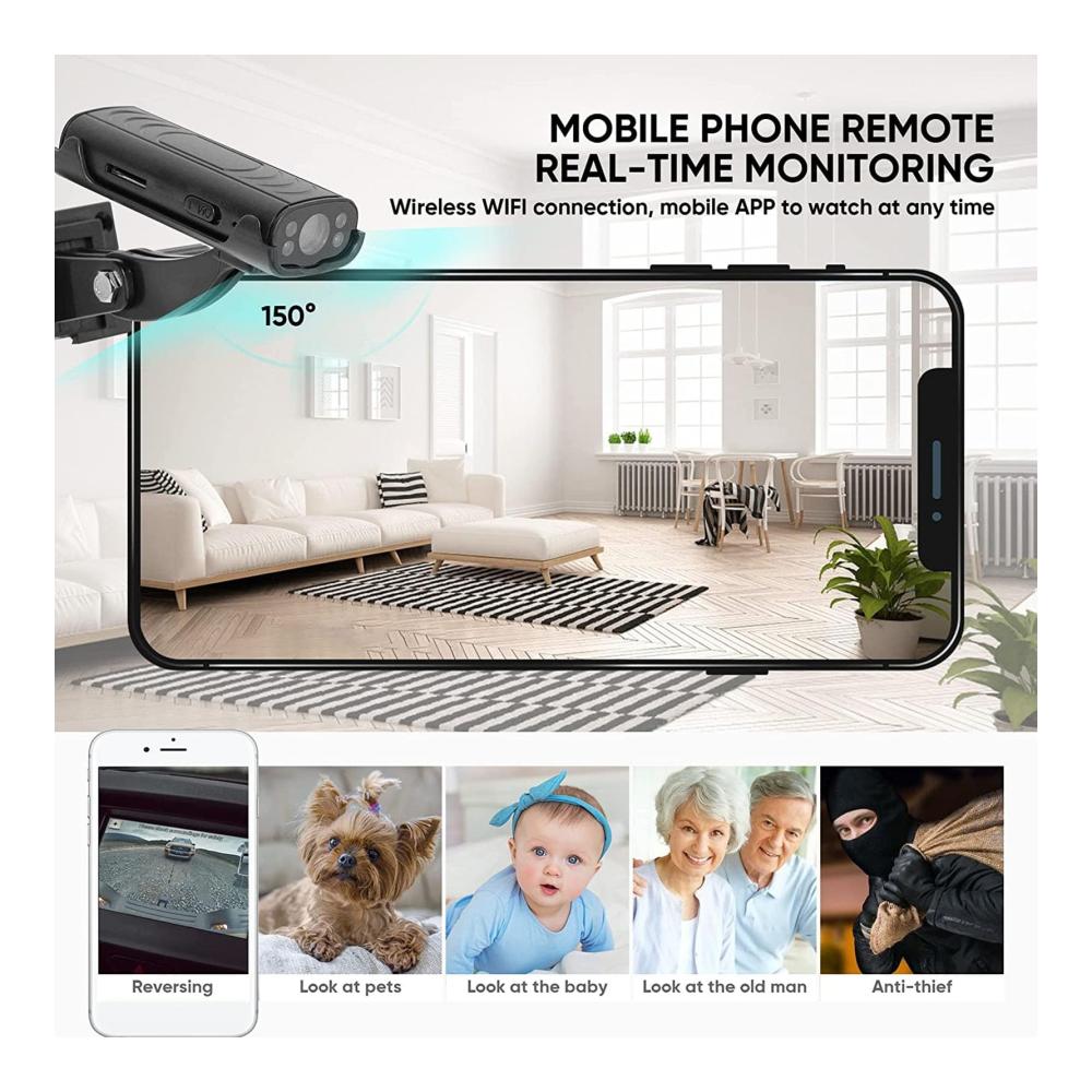 Diese hochauflösende 1080P-Kamera bietet ein 150° Weitwinkelobjektiv für maximale Sichtbarkeit. Mit einem eingebauten 600mAh Lithium-Ionen-Akku und WIFI-Fernbedienung ist sie perfekt für Autos, Wohnmobile und LKWs. Das Paket enthält alles, was Sie benötigen: die Kamera, Halterungen, Datenkabel und ein Handbuch. Die Kamera unterstützt bis zu 32GB Speicherkarten und verfügt über eine mobile Erkennungsfunktion für zusätzliche Sicherheit.