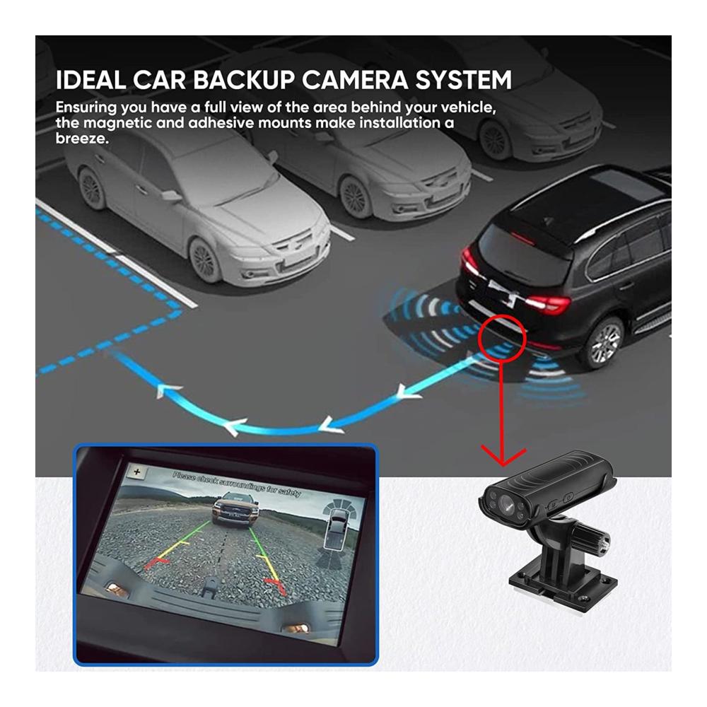 FLEXIBLE INSTALLATION: Die Rückfahrkamera ist mit einer Magnet- und Klebebasis ausgestattet, die in mehreren Winkeln eingestellt werden kann, und der eingebaute Akku kann problemlos in einer Vielzahl von Umgebungen installiert werden, um Geschäfte, Lagerhäuser, die Sicherheit zu Hause, Fahraufzeichnungen und mehr zu verwalten.