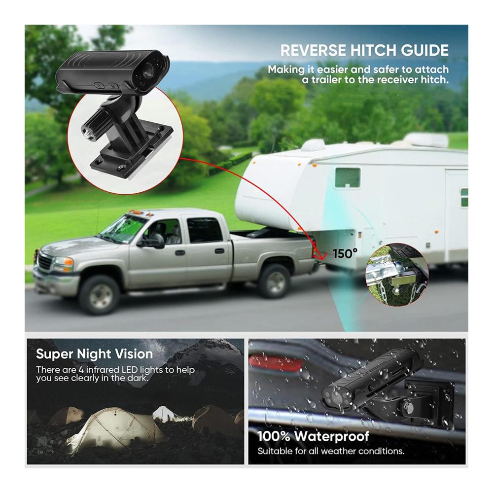 RÜCKFAHRKAMERASYSTEM: Ausgestattet mit einem 150°-Weitwinkelobjektiv, einem eingebauten wiederaufladbaren Akku und einer stabilen drahtlosen Übertragung von 20 Fuß, was das Manövrieren in engen Räumen erleichtert. Geeignet für Autos, Wohnmobile, LKWs, Anhänger, Häuser und mehr.