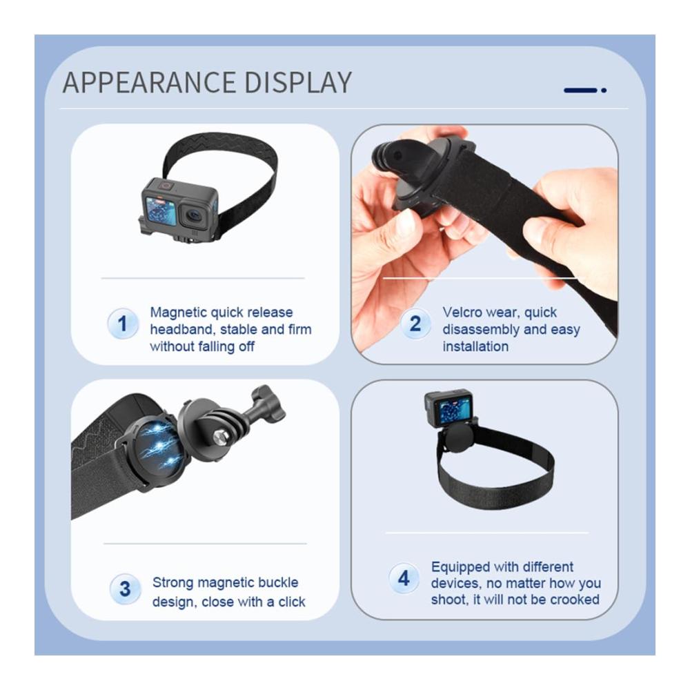 Das Magnetische Stirnband für Action-Kamera bietet Ihnen die ultimative Freiheit beim Aufnehmen Ihrer Abenteuer. Durch das verstellbare Kopfband und die Armbänder ist es perfekt kompatibel mit GoPro 11/10/9/8/7. Erleben Sie die Welt aus einer neuen Perspektive dank der 180°-Verstellbarkeit und halten Sie Ihre Momente aus verschiedenen Blickwinkeln fest. Die stabile Kamerahalterung gewährleistet eine sichere Befestigung Ihrer Kamera, während Sie sich in actionreiche Aktivitäten stürzen. Ein unverzichtbares Accessoire für alle Fotografen und Videofilmer.