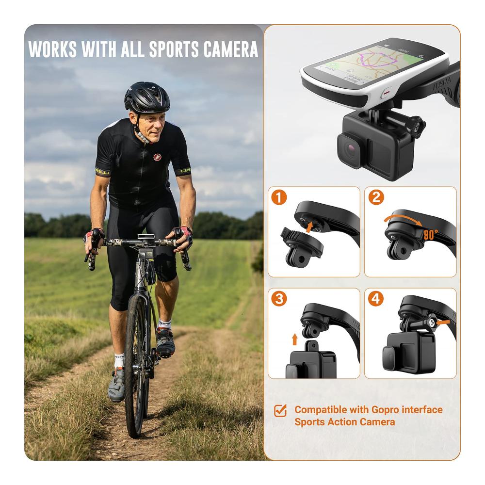 • Die Halterung ist auch kompatibel mit Garmin Varia UT800 Smart Headlight, Garmin ChargerPower Pack, Gopro Interface Sports Action Camera. So können Sie auch in der Nacht fahren und es ist perfekt für Videoaufnahmen während der Fahrt.