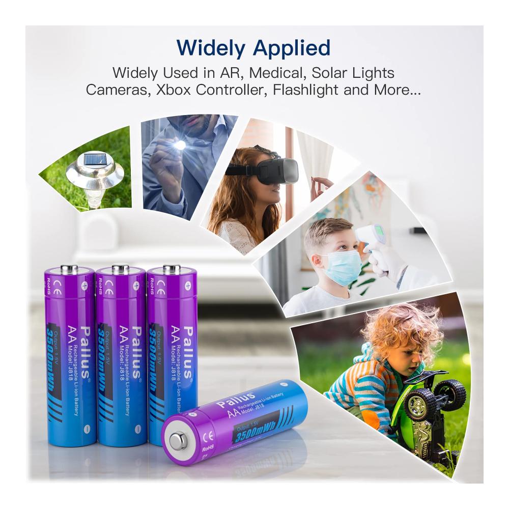 Geringes Gewicht, aber ultra hohe Kapazität von 3500 mWh: Pallus AA Lithium Akkus sind ideal für kabellose Mäuse, elektrische Spielzeuge, Personenwaagen, medizinische Geräte, kabellose Tastaturen und mehr.