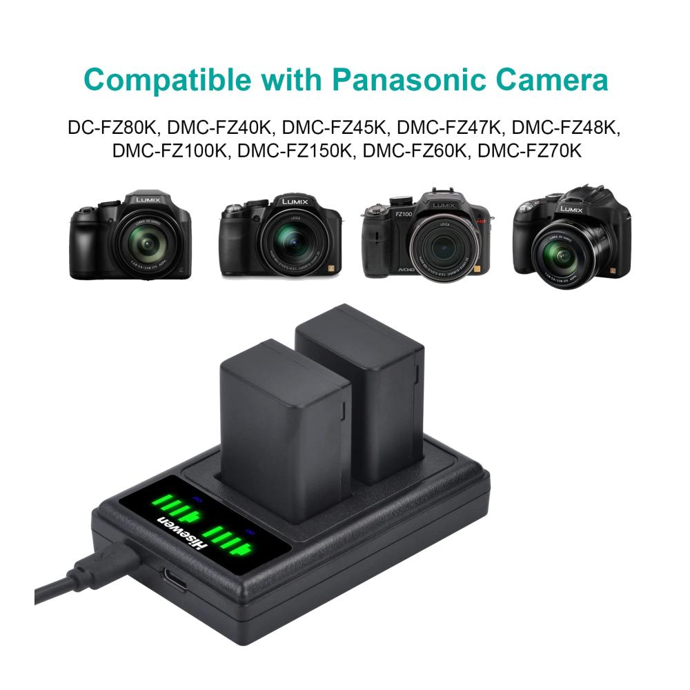 【Vollständige Kompatibilität】Hisewen DMW-BMB9 Akku Ladegerät voll kompatibel mit Panasonic Lumix DMC-FZ82, DMC-FZ80, DMC-FZ100, DMC-FZ150, DMC-FZ72, DMC-FZ70, DMC-FZ62, DMC-FZ60, DMC-FZ48, DMC-FZ47, DMC-FZ45, DMC-FZ40&LEICA V-Lux2, V-Lux3 Kamera.