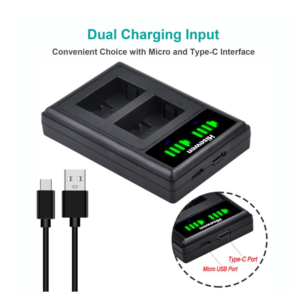 【Liste der Pakete】 1 x Hisewen DMW-BMB9 LED USB Dual Ladegerät, 1 x Typ-C Ladekabel.(Akku NICHT enthalten).30 Tage Geld zurück, 12 Monate Garantie und Technik-Support.
