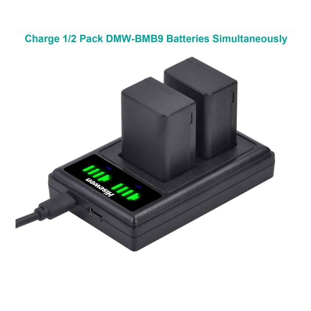 【Duales Ladegerät】Hisewen DMW-BMB9 USB Ladegerät kann 2 Pack DMW-BMB9 Akkus gleichzeitig und unabhängig voneinander aufladen, so dass Ihre Kamera die ganze Zeit über einsatzbereit ist.