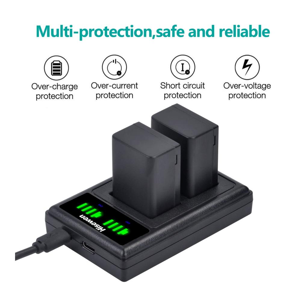 Hisewen Dual USB Ladegerät für Panasonic DMW-BMB9 Akku. Eigenschaften:-Hisewen DMW-BMB9 Ladegerät voll kompatibel mit Panasonic Lumix DMC-FZ82, DMC-FZ80, DMC-FZ100, DMC-FZ150, DMC-FZ72, DMC-FZ70, DMC-FZ62, DMC-FZ60, DMC-FZ48, DMC-FZ47, DMC-FZ45, DMC-FZ40, LEICA V-Lux2, V-Lux3 Kameras.-Hisewen USB Ladegerät kann 2 Packungen DMW-BMB9 Akkus gleichzeitig und unabhängig voneinander aufladen.-Eingebaute LED Stromanzeige, dieses USB Ladegerät zeigt den Stromverbrauch in Echtzeit durch 4 Stufen von Kontrollleuchten an.-Das DMW-BMB9 Ladegerät verfügt über einen Typ-C und einen Micro-USB Ladeanschluss, mit denen Sie verschiedene Ladeoptionen nutzen können, z. B. Wandladegerät, Powerbank, Laptop, Autoladegerät.-Kleines und leichtes Design, einfach zu tragen, kompakt, aber nie stecken bleiben. ein Muss für Reisen.-Mehrfacher Schutz: Schutz vor Überladung, Überspannung und Überhitzung gewährleistet die Sicherheit und Stabilität Ihrer Akku.Spezifikation:Eingabe: Micro USB 5V – 2A,Type-C 5V 2A,Ausgabe:8.4V – 0.6A *2,Dimension: 8.8cm*5.8cm*1.6cm (L*W*H),Hergestellt aus langlebigen und glatten ABS Materialien.Das Paket enthält:1 x Hisewen DMW-BMB9 Dual USB Ladegerät (Akku nicht im Lieferumfang enthalten),1 x Type-C Ladekabel.Garantie:30 Tage Geld-zurück-Garantie, 12-monatige Qualitätsgarantie und lebenslanger technischer Support.Wenn Sie irgendwelche Vorschläge haben oder mit dem Produkt unzufrieden sind, zögern Sie bitte nicht, unseren Online-Kundendienst zu kontaktieren, um Hilfe zu erhalten!