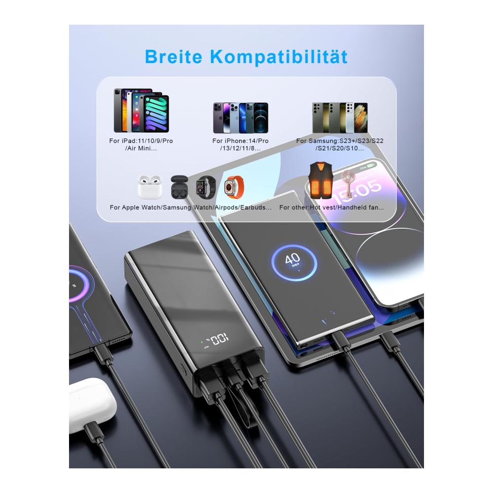 【50000mAh mobile Powerbank mit großer Kapazität】Das Lanerbo 50000mAh mobile Netzteil ist mit fast allen Mobiltelefonen auf dem Markt kompatibel, einschließlich iPhones, Huawei, Samsung, Xiaomi, Tablets usw., um Ihre täglichen Bedürfnisse zu erfülle