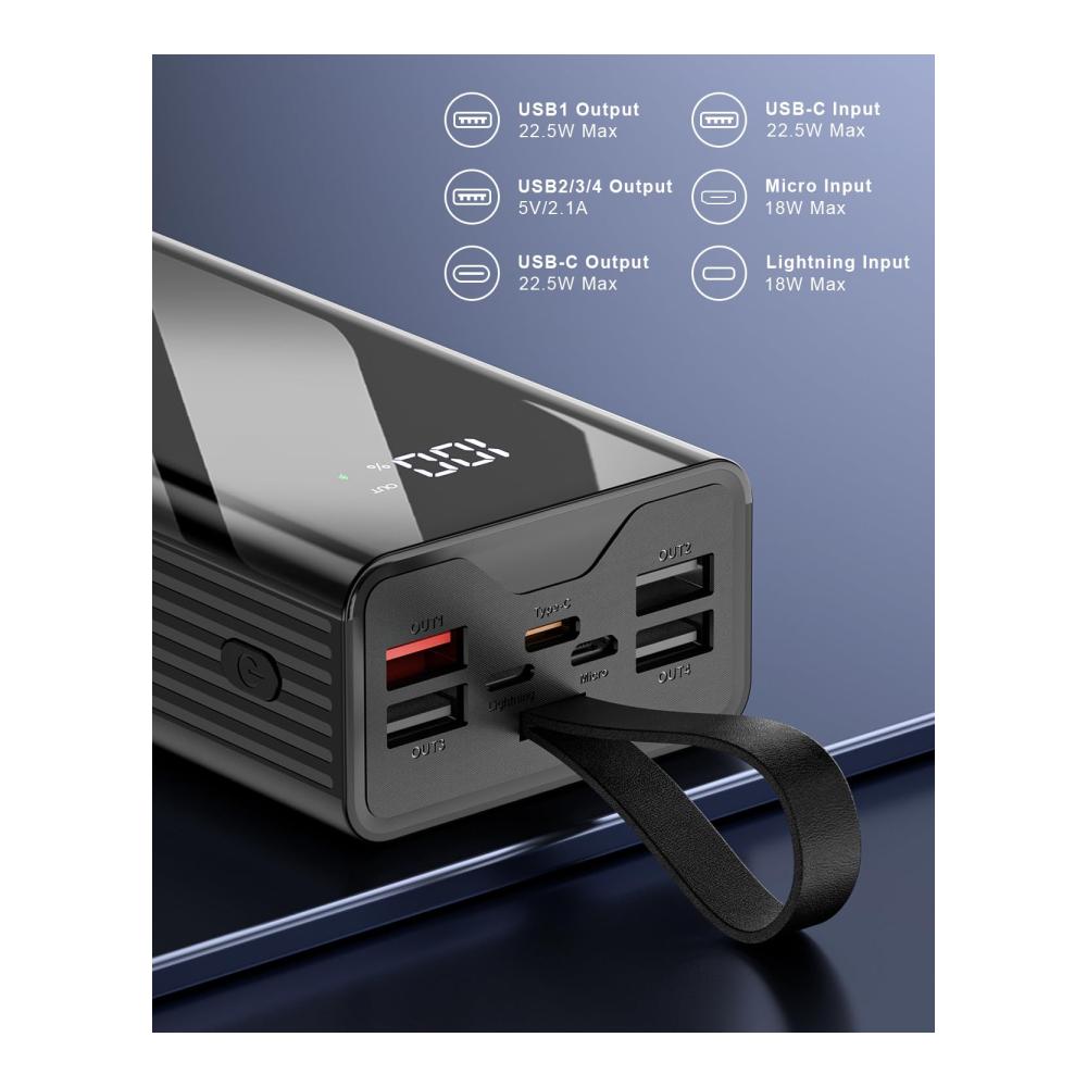 Maximale Power für unterwegs! Die Power Bank 50000mAh von Lanerbo ist mit fast allen Mobiltelefonen, Tablets und mehr kompatibel. Mit einer Schnellladefunktion und 5 Ausgängen bietet sie große Kapazität für Ihre täglichen Bedürfnisse. Farbe: 1, Ausgangsstrom: 5 Ampere.
