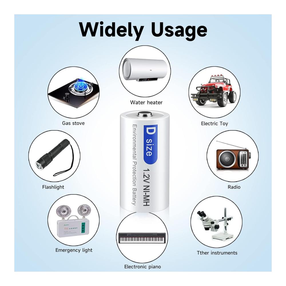 【Langlebige D-Batterien】 Unsere hochwertigen LR20 D-Batterien haben eine super hohe Kapazität und eine lange Lebensdauer, so dass sie der perfekte Ersatz für Standard-D-Batterien in Digitalkameras, Wassererhitzern, LED-Taschenlampen, Notfall-Laternen, tragbaren Radios, Kassettenrekorder, Solarlampen, Spielzeug, elektrische Geschirrspüler, Babysitze und vielem mehr sind.