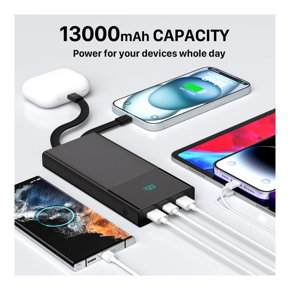 Schnellladen war noch nie so einfach – dank 20W PD Schnellladefunktion. Die 13000mAh Kapazität versorgt Ihr Telefon mehrmals am Tag.