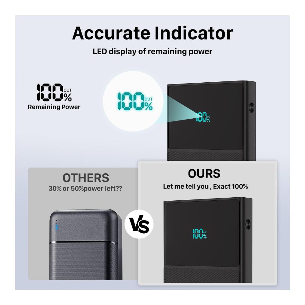 (Intelligente LED-Anzeige): Es kann die verbleibende Leistung sehr deutlich zeigen, und der Bildschirm wird automatisch geschlossen, wenn Sie die verbleibende Leistung Prozentsatz sehen wollen, drücken Sie einfach die Power-Taste (Tipp: wenn die verbleibende Leistung 5% ist, wird der Bildschirm blinken, erinnert Sie daran, die mobile Macht zu laden)