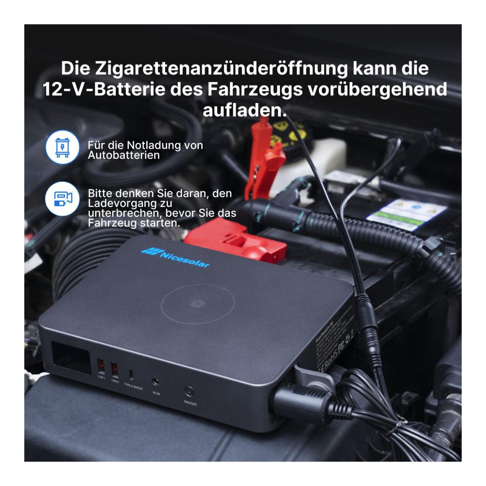 2. Bitte trennen Sie die tragbare Stromversorgung, bevor Sie das Fahrzeug starten