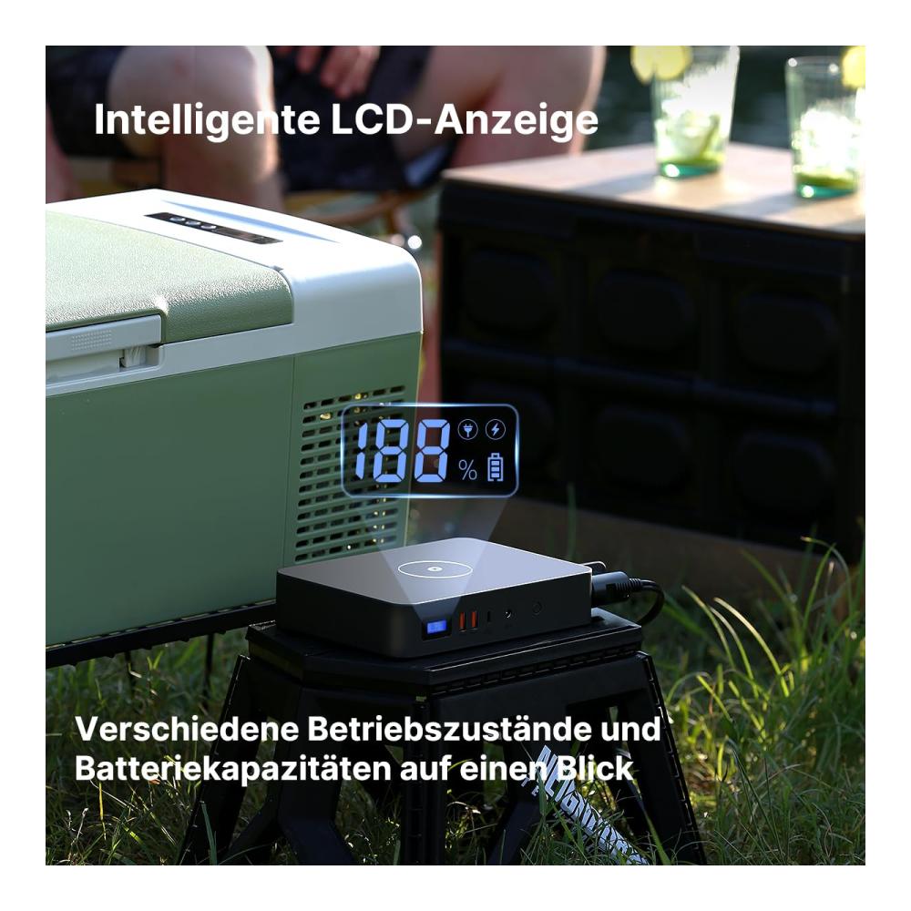 Unsere tragbare Powerstation und Powerbank bieten Ihnen unübertroffene Leistung und Vielseitigkeit für unterwegs. Mit der innovativen PD100W-Technologie können Sie Ihre Geräte blitzschnell aufladen oder die Powerbank selbst mit hoher Geschwindigkeit wieder aufladen. Die Ultra-Kapazität von 288Wh garantiert langanhaltende Energie für Ihre Abenteuer, während die verschiedenen Anschlüsse ein gleichzeitiges Laden von bis zu 5 Geräten ermöglichen. Dank der Kompatibilität mit den meisten CPAP-Geräten sind Sie auch bei Notfällen bestens ausgerüstet. Zudem ist die Powerstation mit einem intelligenten LCD-Display ausgestattet, das Ihnen jederzeit den aktuellen Ladestatus anzeigt. Holen Sie sich jetzt die perfekte Lösung für Camping, Reisen und Outdoor-Abenteuer