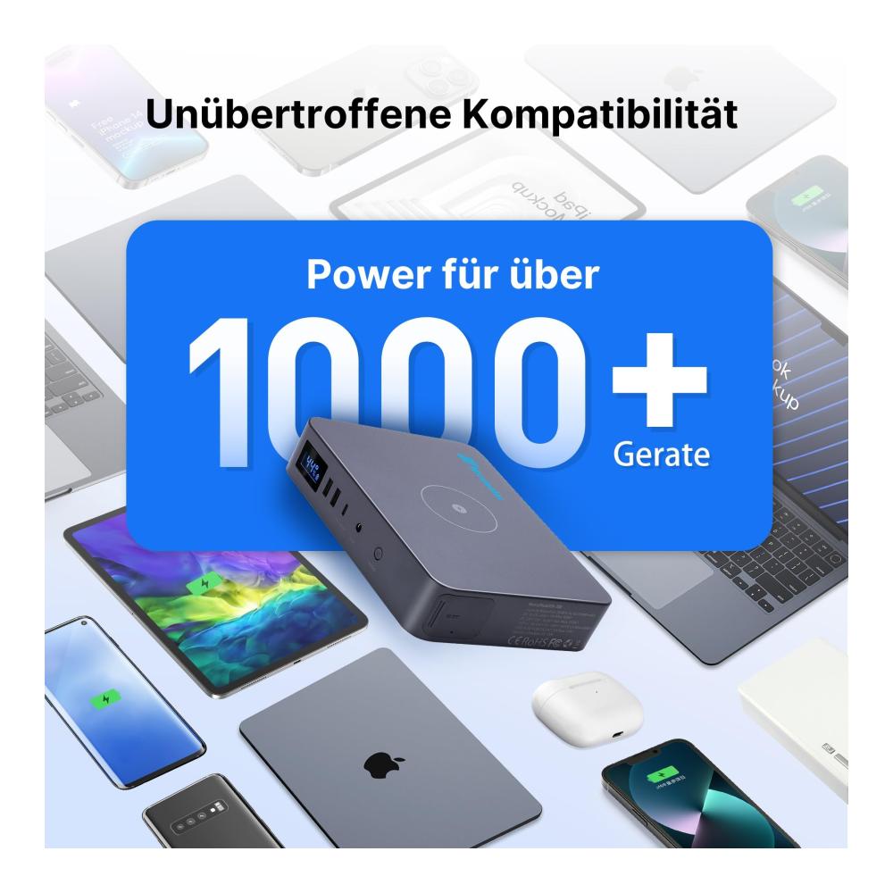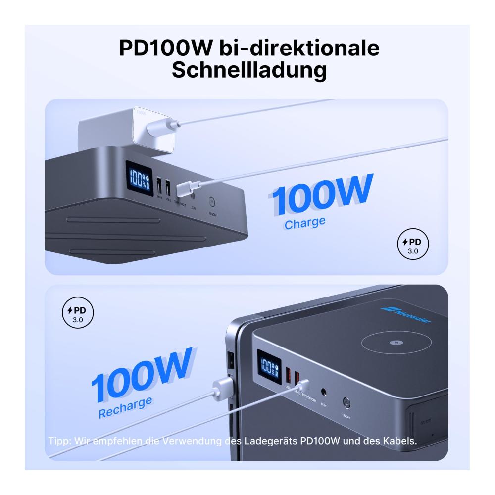✅【PD100W bi-direktionale Ladeleistung】Ausgestattet mit der neuesten Power Delivery 3.0 und bi-direktionaler Technologie kann der USB-C verwendet werden, um Geräte wie Laptops blitzschnell aufzuladen oder sich selbst mit 100W Leistung schnell wieder aufzuladen.
