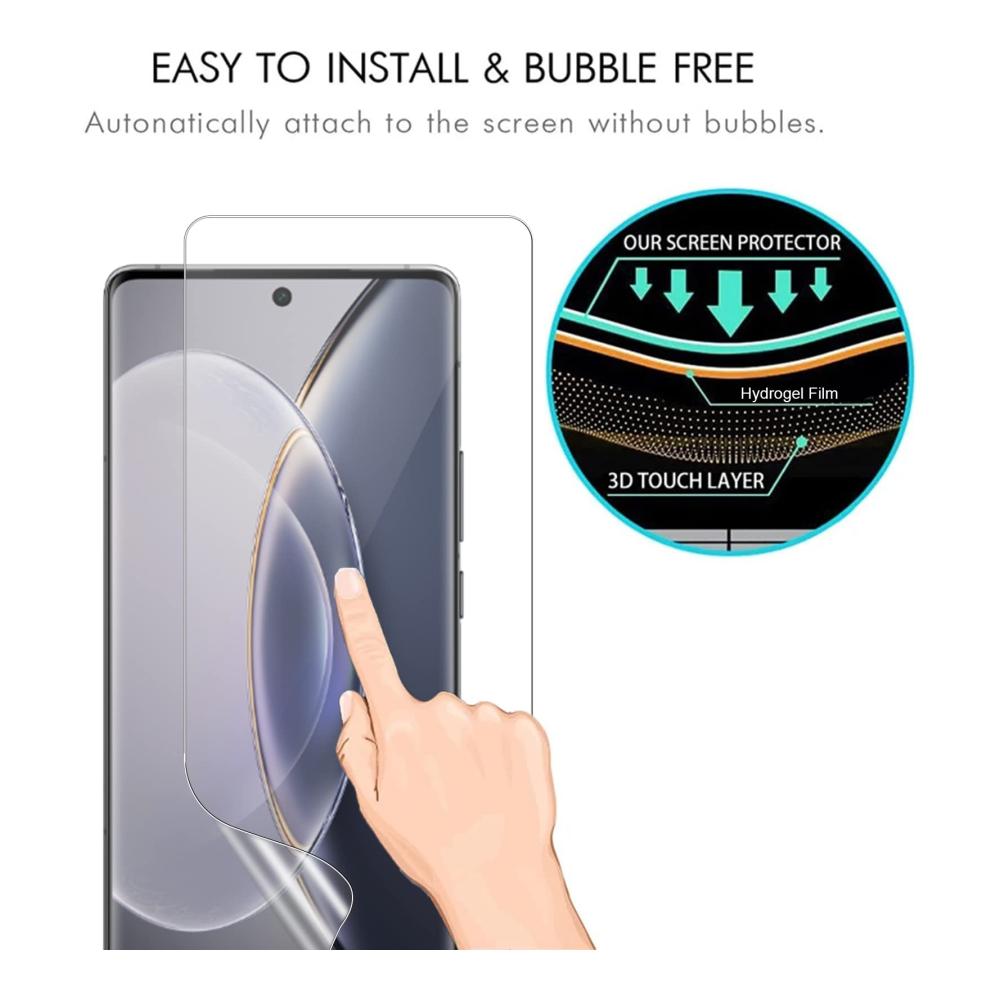 Premium-Hydrogel: Schutzfolie verwendet ein weiches Hydrogel, das nach Belieben gefaltet werden kann und die gebogenen Kanten des Vivo X90 PRO vollständig bedeckt und einen effektiven Kratzschutz für das Telefon bietet.