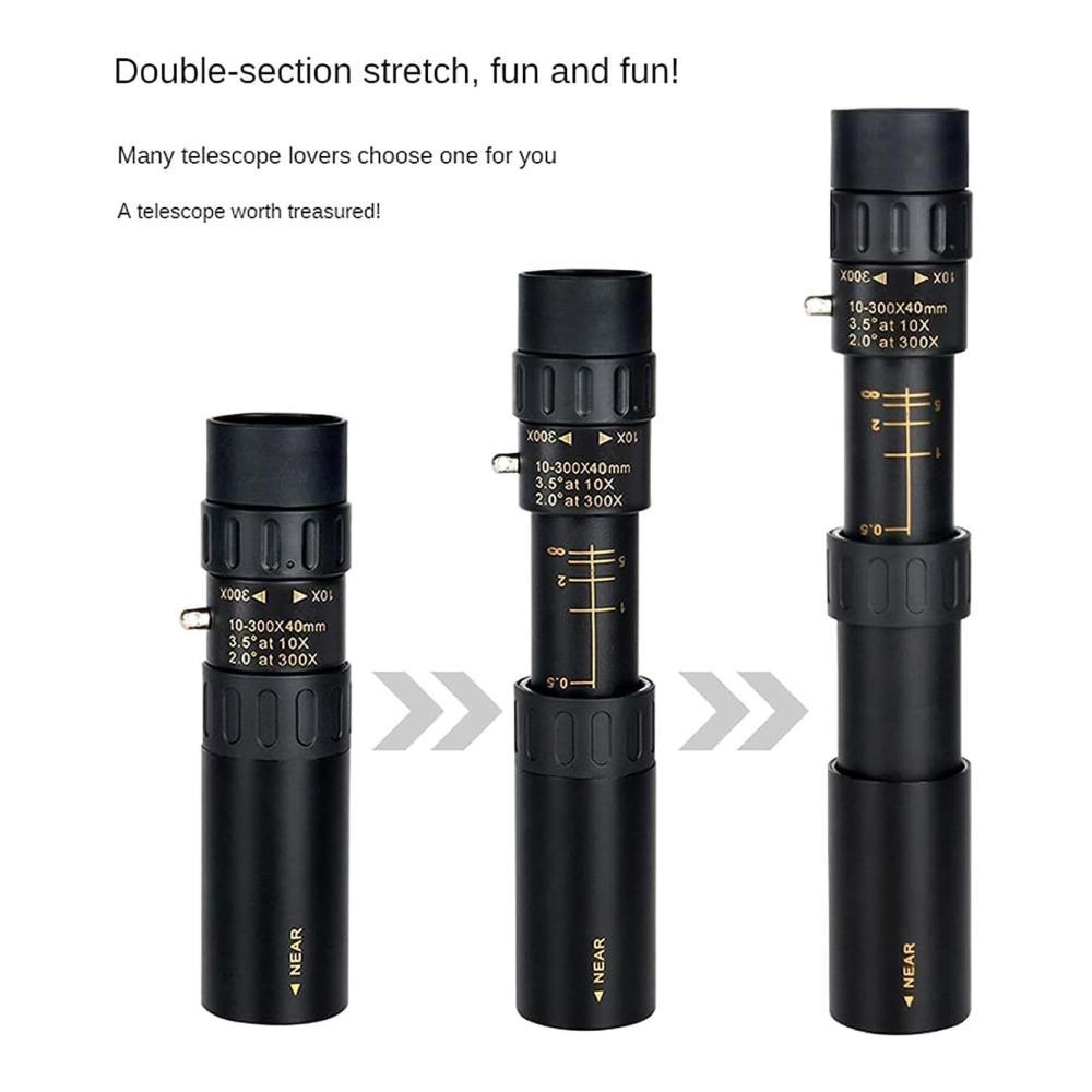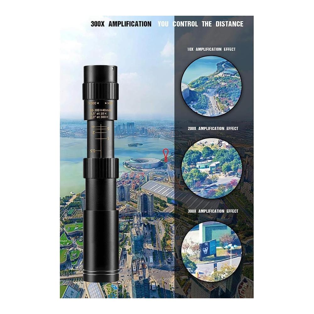Erleben Sie mit unserem Metall-Monokular-Teleskop eine neue Dimension der Seherfahrung. Die Vergrößerung reicht von 10X bis hin zu 300X und bietet somit eine breite Palette an Möglichkeiten für die Beobachtung großer Distanzen. Die hochauflösenden optischen Brillen sorgen für eine kristallklare Sicht, perfekt geeignet für Vogelbeobachtung, Reisen, Tourismus und Outdoor-Aktivitäten. Das Stretch-Rotationszoom verleiht Ihnen ein einzigartiges Erlebnis und eine verbesserte Portabilität. Mit einem Durchmesser von 25 mm liefert dieses Monokular klare Bilder und unterstützt sogar die Smartphone-Fotografie und Videografie.