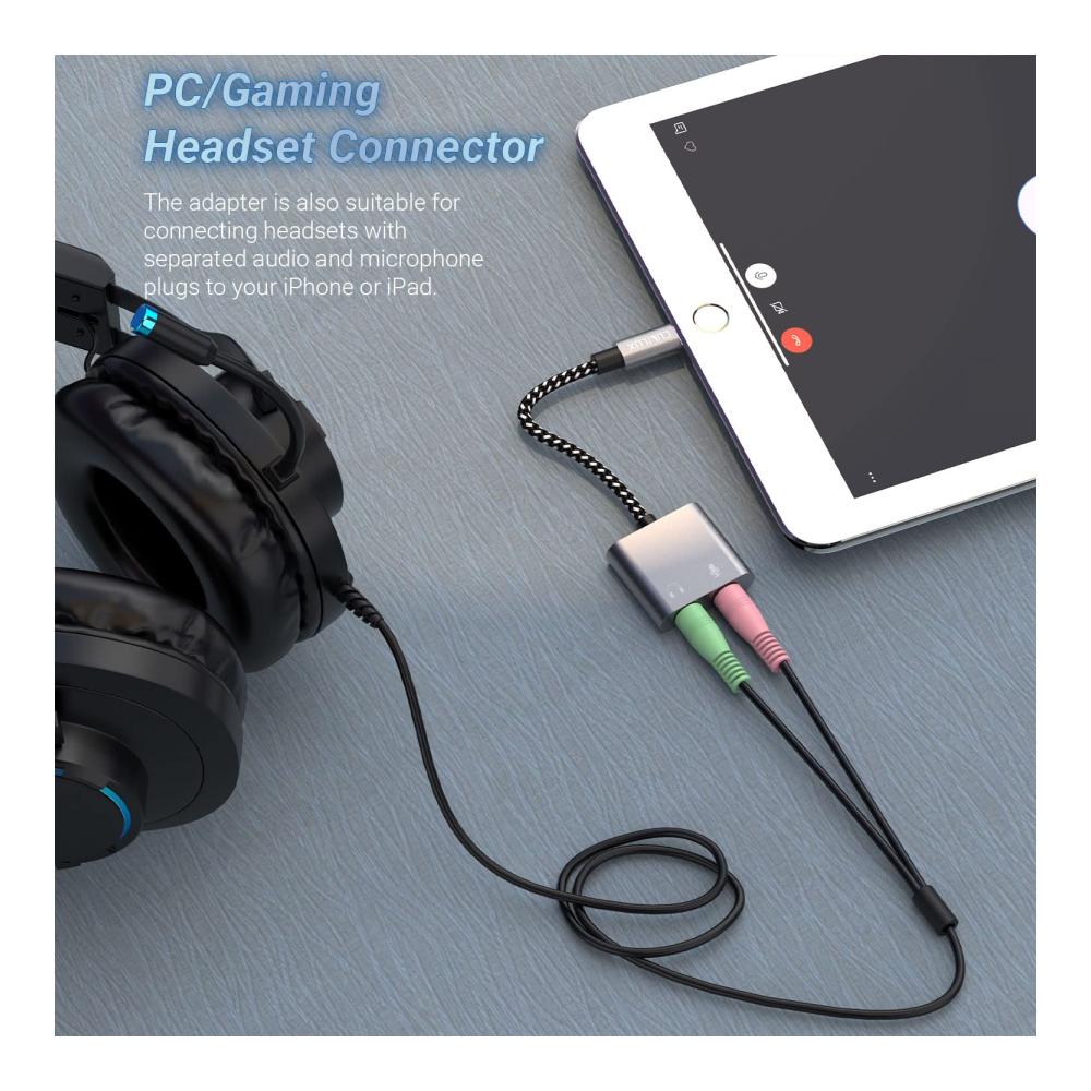 [Lightning to Kopfhörer und Mikrofon Adapter] – Der Adapter teilt die Lightning-Buchse in eine 3,5 mm TRS-Mikrofonbuchse und eine 3,5 mm TRS-Audiobuchse, So können Sie ein Lavalier-Mikrofon für die Aufnahme anschließen und gleichzeitig Ihren Ton überwachen, oder PC- oder Gaming-Headsets mit getrennten Audio- und Mikrofonanschlüssen an Ihr iPhone oder iPad anschließen.