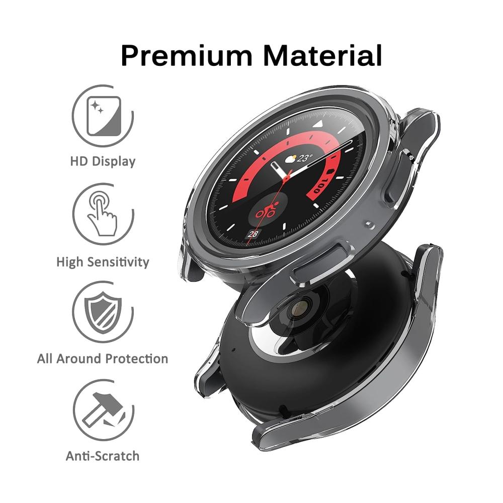 ✨[HD-Klarheit & Berührungsfreundlich] Das Hartglas galaxy watch 5 pro schutzhülle bietet hochauflösende Klarheit, Berührungsempfindlich, passt perfekt auf jeden Knopf der Uhr, macht Knöpfe und Aufladen ungehindert.