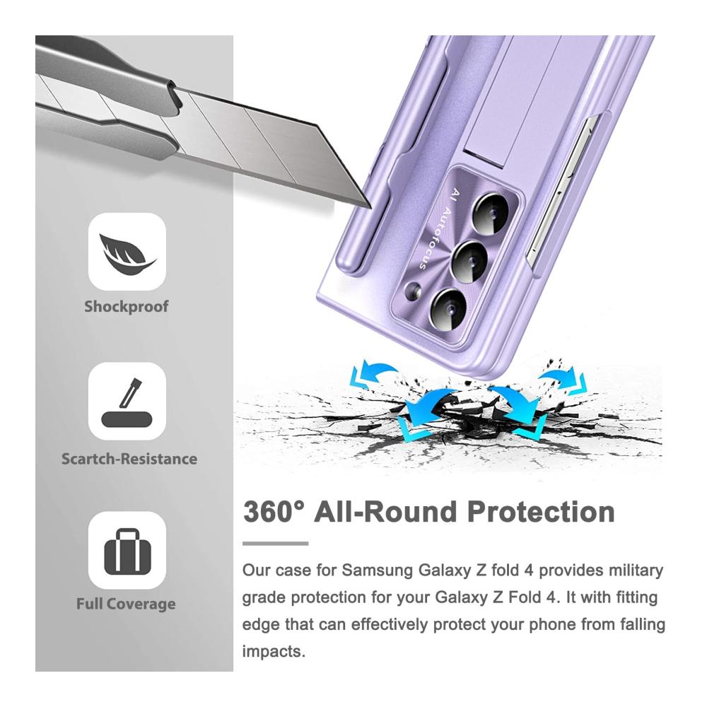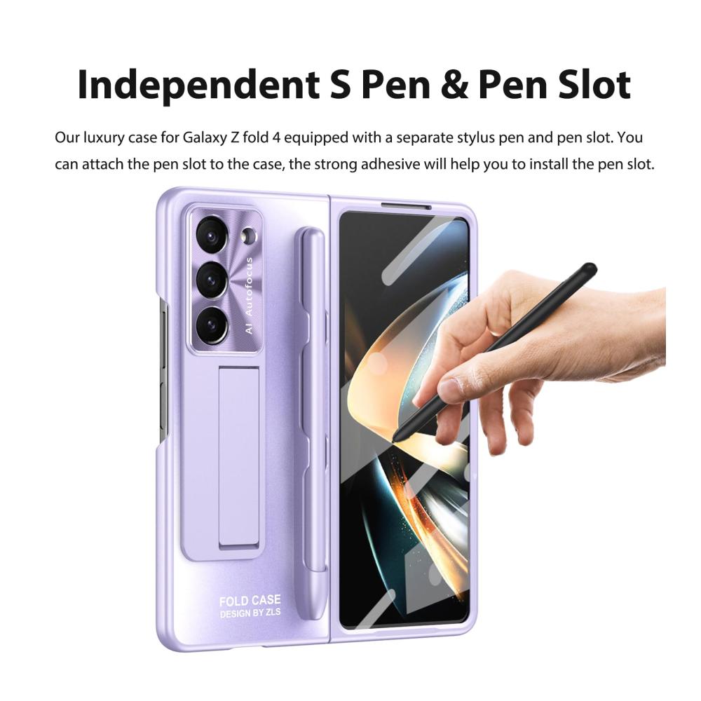 Miimall Hülle Kompatibel mit Samsung Galaxy Z Fold 4 Hülle mit Stift Stifthalter, Fold 4 Hülle mit Displayschutz Kratzfest Ultradünn PC Handyhülle mit Ständer für Galaxy Fold 4 2022