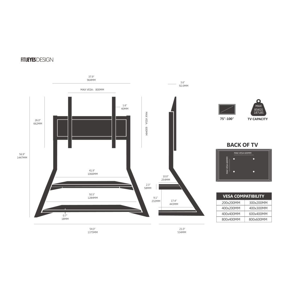 【Bigeer TV-Ständer】FITUEYES folgt dem klassischen Design der Eiffel-Serie und bringt den größeren TV-Ständer auf den 75-100Zoll großen TV-Nutzer. Dies ist ein künstlerischer, stabiler und praktischer TV Standfuss für Ihren teuren Fernseher. Der TT201301MB ist leistungsstark genug, um mit VESA-großen TVs zwischen 200 x 200 und 800 x 600 kompatibel zu sein. Es ist wirklich die richtige Wahl für Sie.