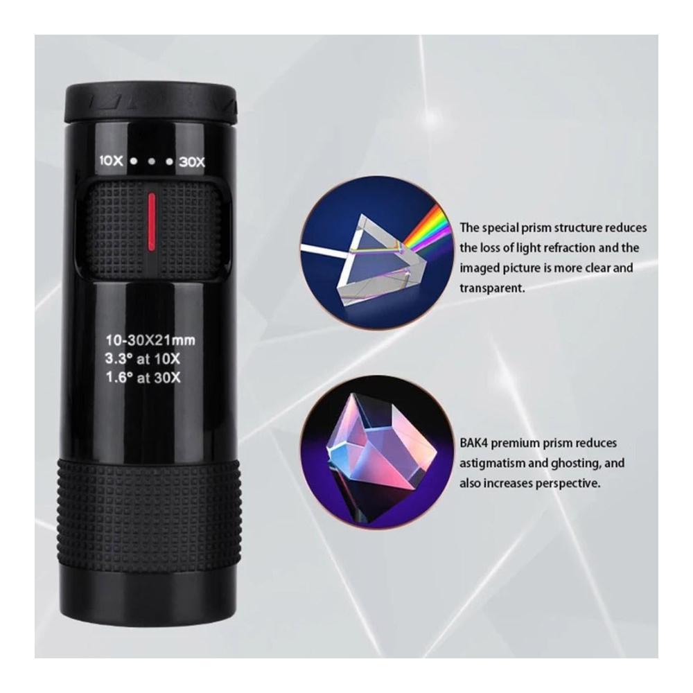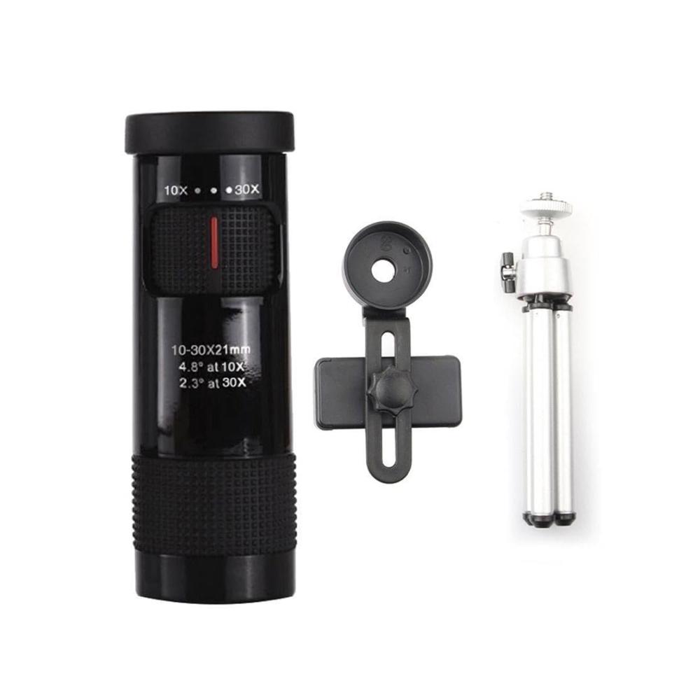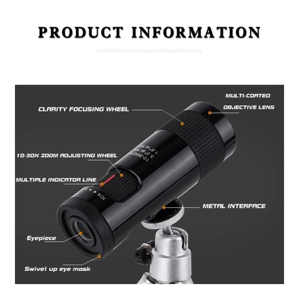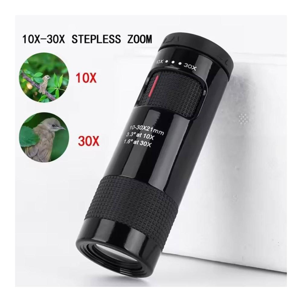 Erforschen Sie die Welt mit unserem Monokular-Teleskop! Einfach zu bedienen, bietet es landschaftliche Gestaltung mit nur einer Hand. Vielseitig einsetzbar für Bergsteigen, Wandern, Vogelbeobachtung und mehr. Unser Set enthält alles, was Sie brauchen, inklusive einem 10-30 x 21 Monokular-Teleskop. Stabil dank der Stativschnittstelle für eine stetige Sicht. Erleben Sie Natur und Sterne mit Leichtigkeit!