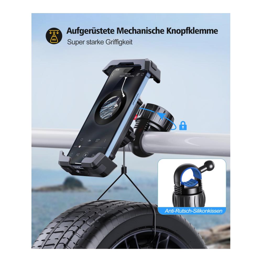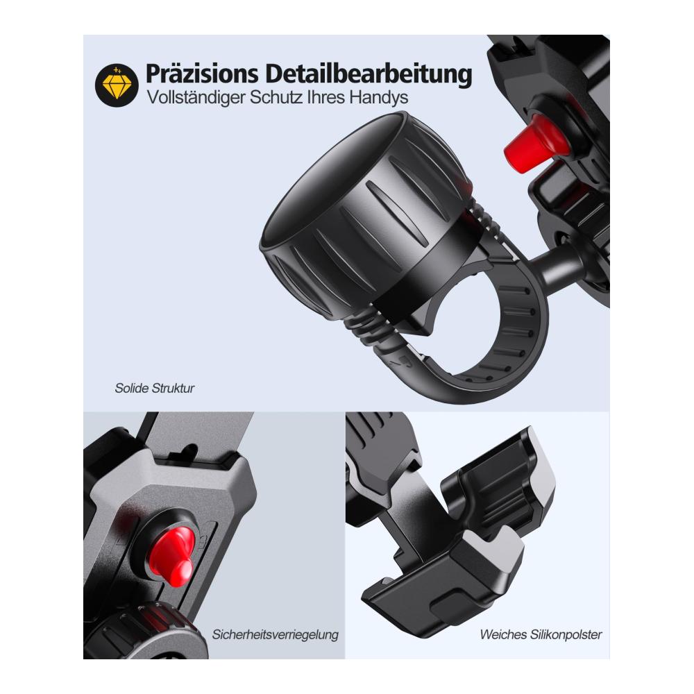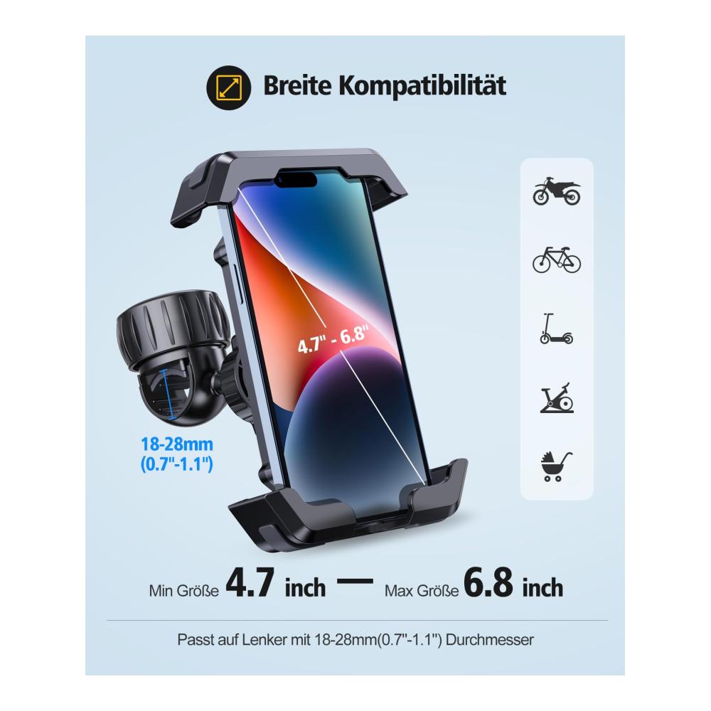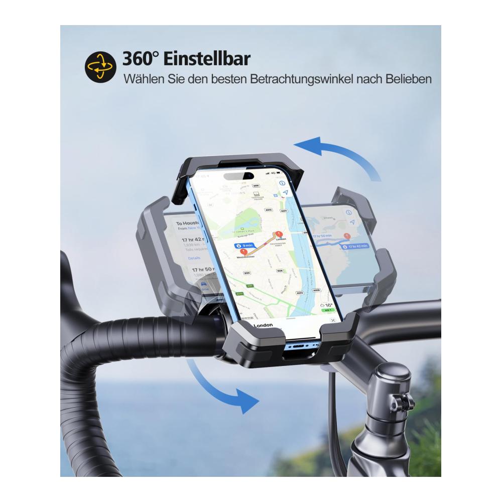 Die Motack Handyhalterung Fahrrad 2024 bietet innovative Funktionen für eine schnelle Installation und eine 360°-Drehung für optimalen Betrachtungswinkel. Sie passt an Lenker von MTBs, Scootern und mehr. Kompatibel mit iPhone 15 Pro/15 und anderen Smartphones.