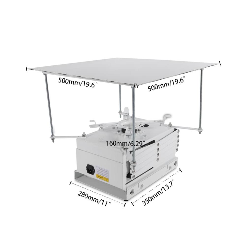 Product Description: Merkmal: Entwickelt für die vollständige Verdeckung des Projektors Positive mechanische Hub-/Fallbegrenzung Hochbelastbare Konstruktion: 10 kg Integrierbar mit den meisten Steuerungssystemen: IR-Fernbedienung und manuelle Steuerungstaste Platz für Kabelmanagement und Projektormontagehalterung muss bei der Bestellung berücksichtigt werden 2 Jahre Garantie Technische Daten Farbe: Weiß Spannung: 220 V Hub: 1 m Leistung: 24 W Max. Belastung: 10 kg Grundplatte: 50×50 cm Abmessungen: 50x50x35 cm Gewicht: 17 kg Nettogewicht: 15,2 kg Paket Inhalt 1 X Lift Projektor Anwendung: Dieser Projektorlifter wird in der Schule, im Versammlungsraum und in anderen Bereichen verwendet. Der Projektor-Lift kann den Projektor versteckt, und dieser Lift enthalten eine Fernbedienung, so wird es schöner und mehr Komfort sein.