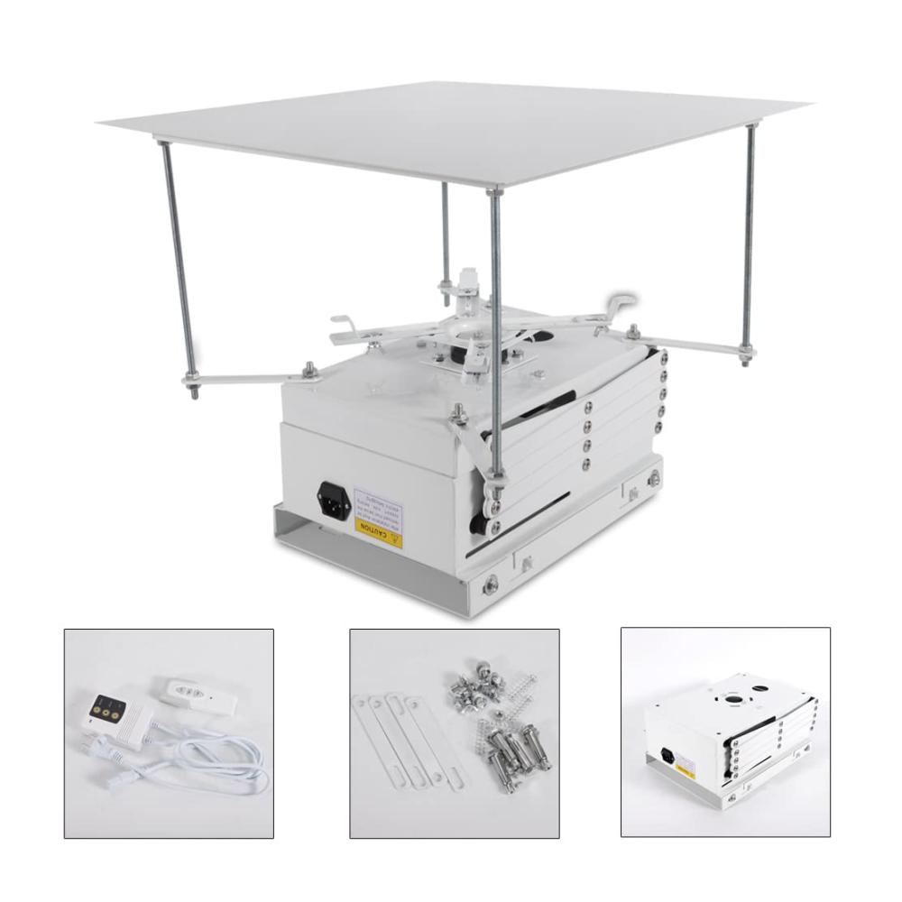 Der motorisierte Projektorhalterung Aufzug mit Fernbedienung ermöglicht eine elegante und unauffällige Platzierung Ihres Projektors. Mit einer Traglast von bis zu 10 kg und einem Hub von 1 m bietet er vielseitige Einsatzmöglichkeiten. Die integrierte IR-Fernbedienung und manuelle Steuerungstaste erleichtern die Bedienung. Dank Platz für Kabelmanagement und Montagehalterung ist er äußerst funktional. Ideal für Schulen, Versammlungsräume und andere Bereiche. Genießen Sie Komfort und Ästhetik mit diesem hochwertigen Projektorlift.