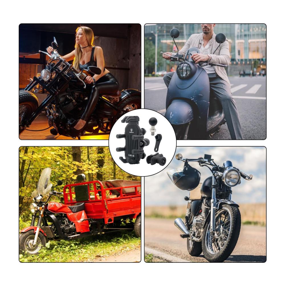 Dieser Motorrad-Handyhalter ist mit einem zuverlässigen mechanischen Verriegelungssystem ausgestattet, das Ihr Telefon sicher während holpriger Fahrten hält. Dank seiner anpassbaren Größe und der 360-Grad-Drehung passt er sich verschiedenen Telefonmarken und -winkeln an. Die Halterung besteht aus hochwertigen Materialien wie Aluminiumlegierung und hochfestem Nylon und ist für Motorräder, Elektrofahrzeuge und Dreiräder geeignet. Die Installation ist einfach und sicher. Ein unverzichtbares Zubehör für Ihre Motorradtouren.