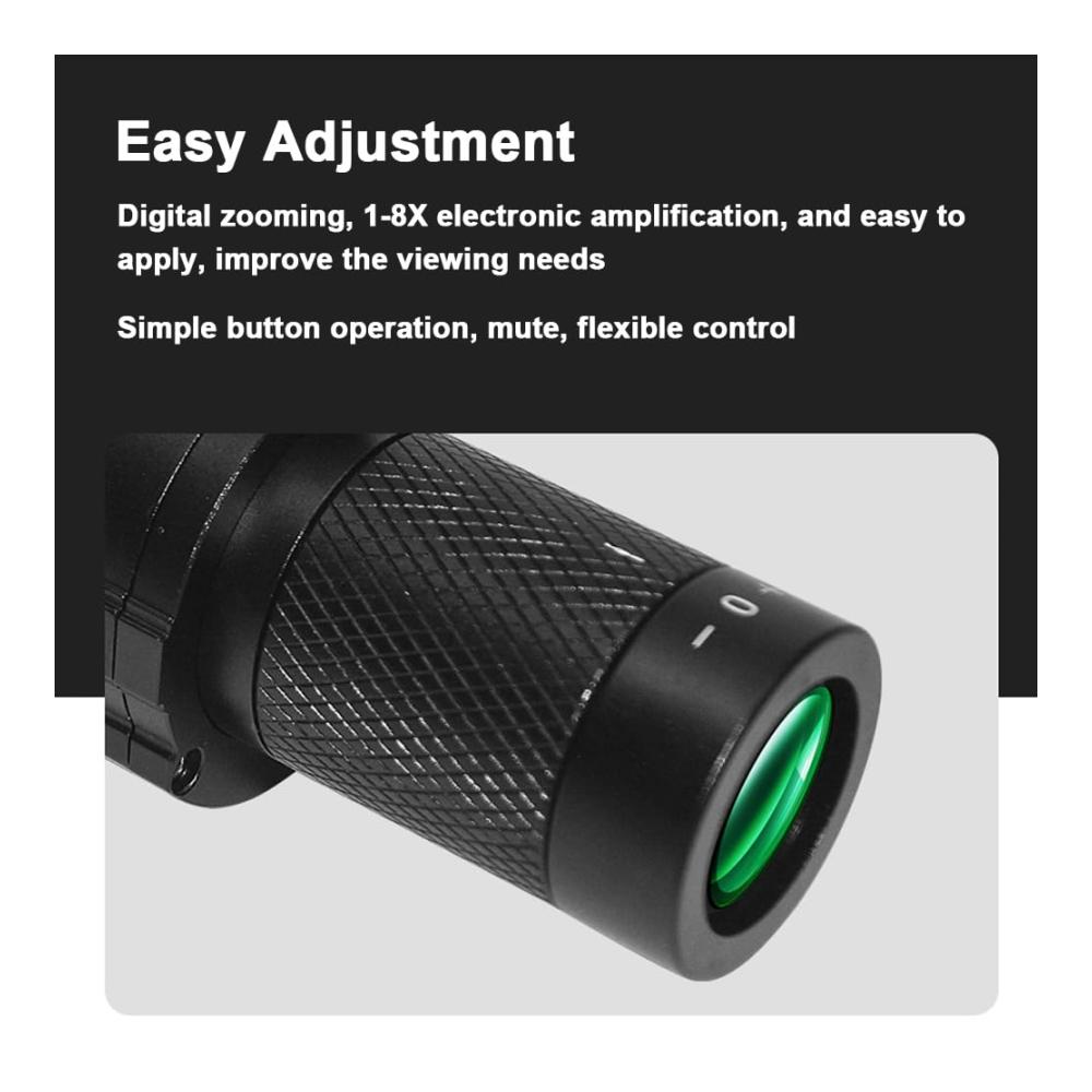 Erleben Sie mit dem ERYUE Nachtsichtgerät eine Welt voller Abenteuer bei Tag und Nacht. Mit seinem 1,54-Zoll-Display und einer Auflösung von 1080P erhalten Sie klare Bilder und Videos. Die Infrarot-Nachtsichtfunktion ermöglicht es Ihnen, Objekte in einer Entfernung von 200–500 Metern zu erkennen. Dieses vielseitige Gerät ist perfekt für Aktivitäten wie Jagd, Vogelbeobachtung, Camping und mehr. Mit eingebauter Lithiumbatterie und USB-Schnittstelle ist es einfach zu bedienen und zu laden. Entdecken Sie die Welt im Dunkeln mit dem ERYUE Nachtsichtgerät.
