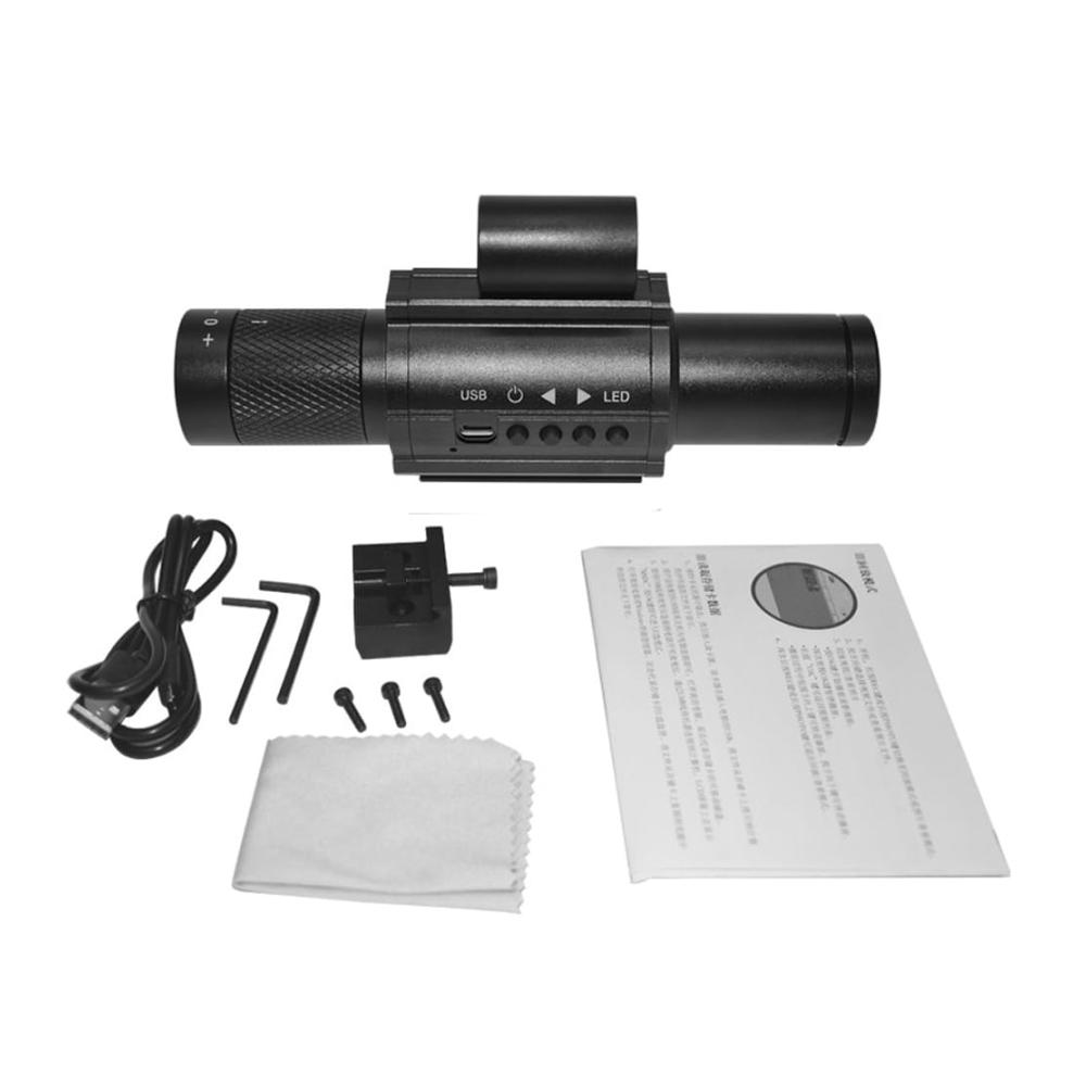 Speicherkarte aufgenommen und verwendet werden, und Bilder können über ein Datenkabel auf den Computer exportiert werden, das auch vom PC auf Mobiltelefone exportiert werden kann. Und unterstützt auch die Funktion zum Abspielen und Löschen von Dateien. 【Einfache Anpassung】: Digitaler Zoom, 1-8-fache elektronische Verstärkung und einfache Anwendung verbessern die Sehanforderungen. Einfache Tastenbedienung, Stummschaltung, flexible Steuerung. 【Breites Einsatzspektrum】: Das Zielfernrohr eignet sich für verschiedene Aktivitäten wie Boots- und Yachtbeobachtung, Jagd, Vogelbeobachtung, Reisen, Wandern, Camping und Tierbeobachtung. Perfekt auch für Sportspiele, Konzerte, Oper usw. Spezifikationen: Material: Metall Kunststoff Batterie: eingebaute 2600-mAh-Lithiumbatterie (im Lieferumfang enthalten) Display: 1,54-Zoll-Display Videoauflösung: 1080P Objektiv: Sichtfeld = 25°, 8–12 mm Laser: 3-500 m zielbare Referenz Infrarotfilter: Automatisch Infrarot-Fülllicht: 3,6 W. 850 nm Infrarotlicht Infrarotwellenlänge: 850 nm Fadenkreuz: einstellbar, unterstützt den Power-Off-Memory-Modus Elektronischer Zoom: 1-8-fache elektronische Vergrößerung Infrarot-Nachtsichtentfernung: 200–500 Meter Batteriebetriebszeit: Einschalten der Infrarot-Nachtsicht-Arbeitszeit von ca. 1,5–3 Stunden; Schalten Sie das Infrarot aus, Arbeitszeit ca. 4–6 Stunden. Je nach Nutzung verändert sich das Umgebungslicht und ändert sich. USB-Schnittstelle: Typ-C USB Betriebsspannung: 4,2 V Betriebstemperatur: -20℃ bis 60℃ Lagertemperatur: -30℃ bis 60℃ Artikelgewicht: 450 g Verpackungsgröße: 305 * 130 * 75 mm / 12,01 * 5,12 * 2,95 Zoll Paketgewicht: 700 g Packliste: 1 * Nachtsichtgerät 1 * Vorrichtung 2 * Schraubenschlüssel 3 * Schraube 1 * Kabel 1 * Reinigungstuch 1 * Richtlinie