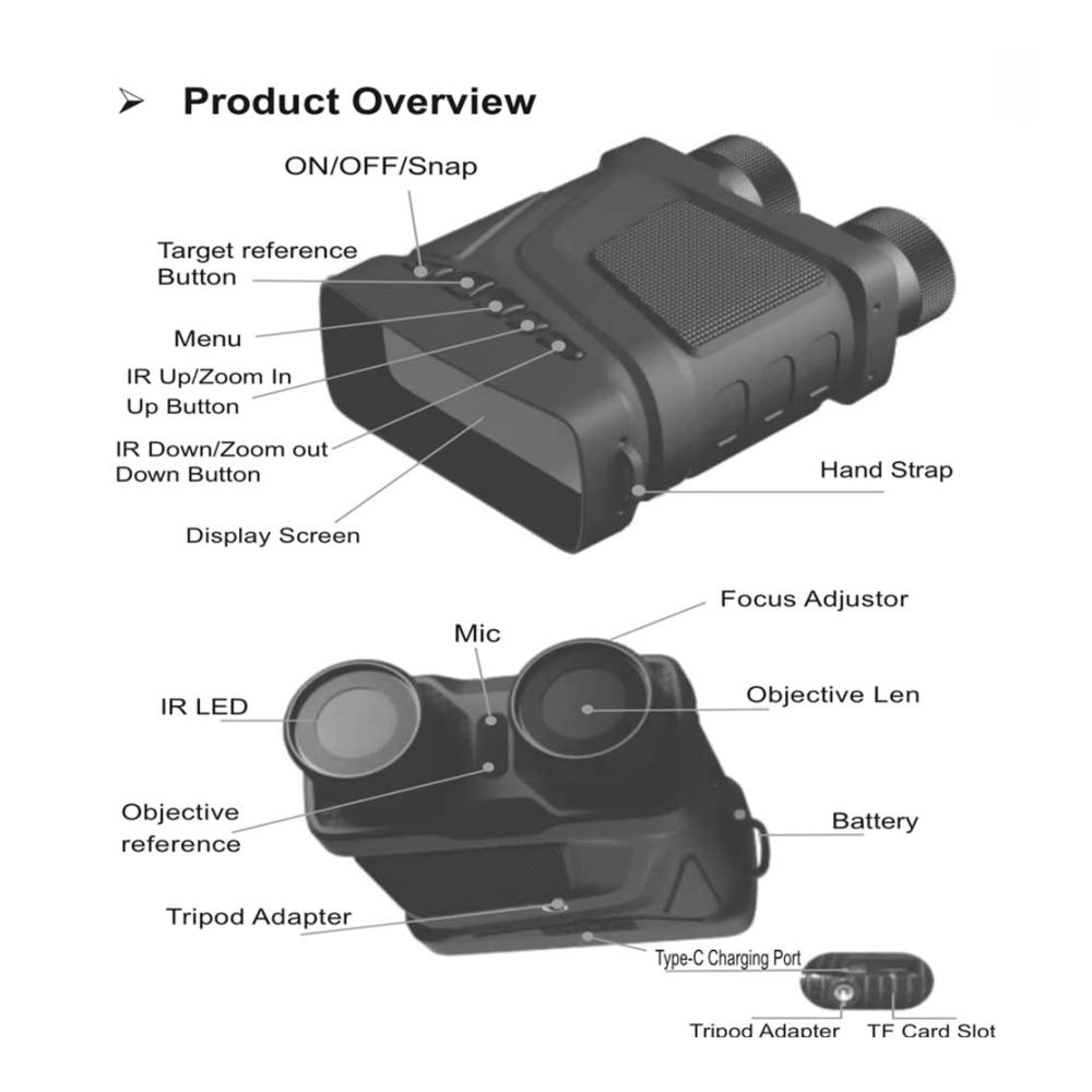 1080p hochauflösendes Video und Bild: Nachtsicht-Spektiv, mit 5-fachem Digitalzoom, mit 6 W Infrarotlicht und 850 nm Beleuchtung, 7-stufiges Infrarotlicht kann je nach Umgebungslicht eingestellt werden, was Ihnen eine bessere Erfahrung bietet
