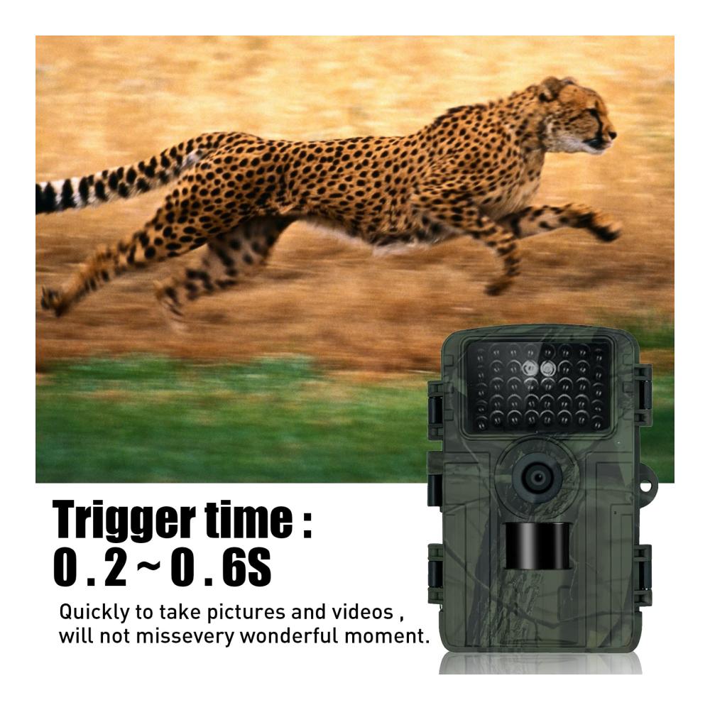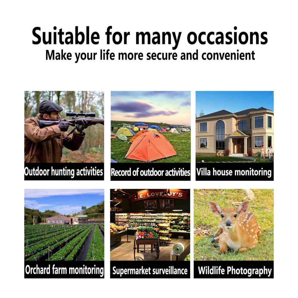 ▶ 【0,2 s Light-ning Fast Triggering】 Die Trail-Kamera verfügt über ein hochempfindliches Triggersystem, das 0,2 s Abfahrt-Induktionsaufnahmen am schnellsten erreichen kann, so dass Sie keinen wunderbaren Moment verpassen. Und es hat eine lange Standby-Zeit, bis zu 10 Monate. Die Akkulaufzeit der Kamera hängt vom spezifischen Nutzungsmodus ab.