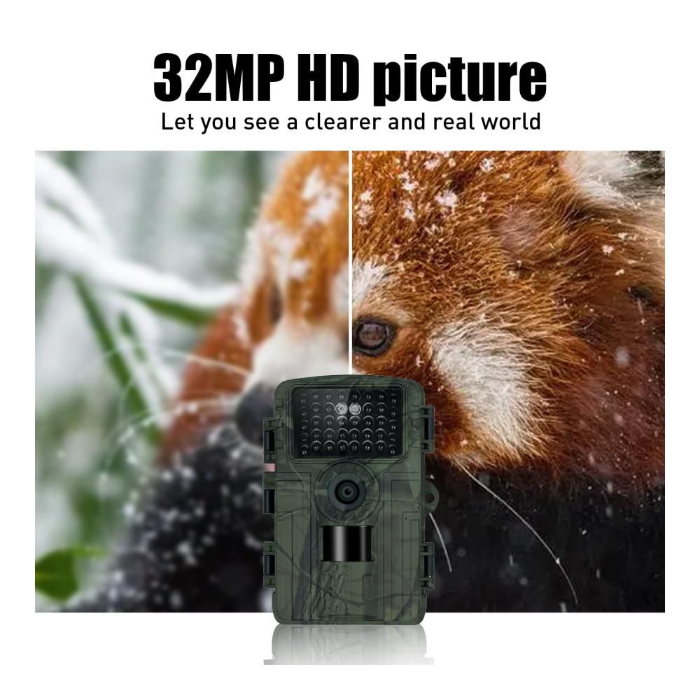 ▶ 【32 MP Standbilder & 1080p Video】 Die Wildkamera mit aktivierter Nachtsichtbewegung hat einen 120 Lese-Erfassungswinkel, der perfekte 32 MP Bilder und 1080p hochauflösende Videos mit Empfindlichkeit und Klarheit aufnehmen kann. Mit dem 2 Zoll LCD-Display können Sie Videos und Bilder vorschauen. Trail Cam sorgt dafür, dass hervorragende Tierbilder nachts hervorragend aufgenommen werden, was alle Ihre Überwachungsbedürfnisse erfüllen kann.