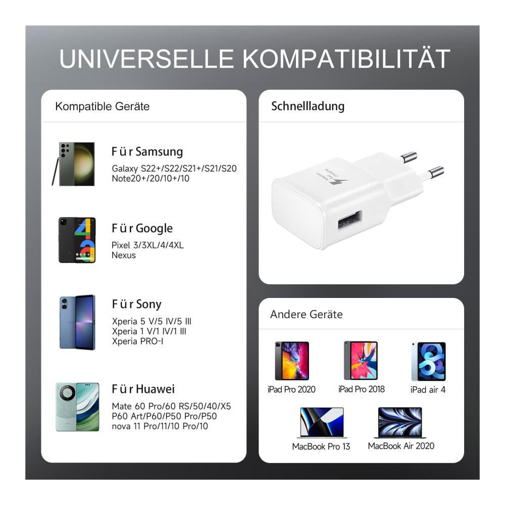 ⭐Breite Gerätekompatibilität: Das Ladegerät ist kompatibel mit einer Vielzahl von Geräten wie Samsung Galaxy S22, S21, S20, S10, Note-Serie, A-Serie, Google Pixel, LG G-Serie, HTC, ZTE Axon, Nexus 6P und anderen USB-Typ-C-Geräten.