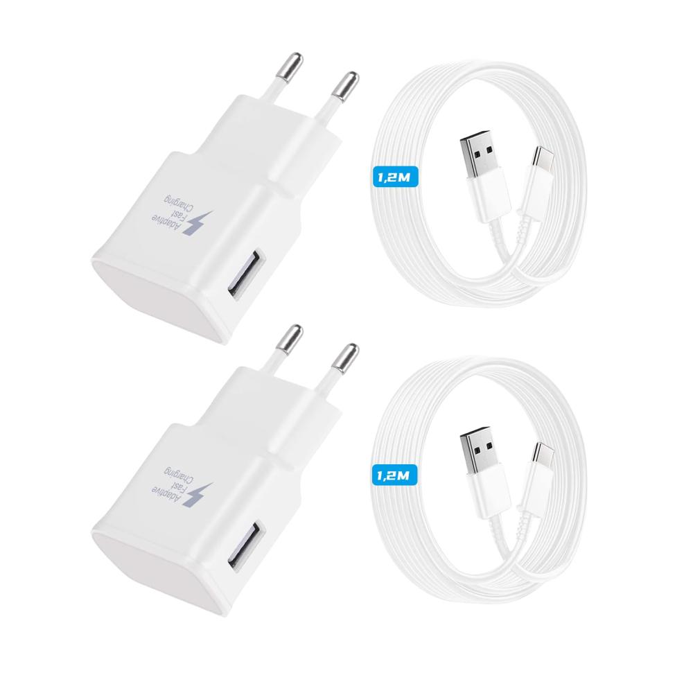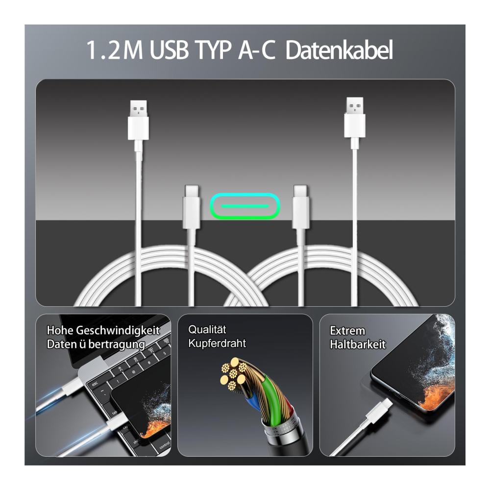 Dieses Android-Handy-Ladegerät 2er-Pack 15W USB C Ladegerät mit adaptivem Schnellladeblock und 1,2 m Kabel ist kompatibel mit verschiedenen Samsung Galaxy Modellen sowie anderen Typ-C-Geräten. Mit Schnellladeprotokollen wie QC und AFC bietet es ein schnelles und sicheres Ladeerlebnis. Das Ladegerät ist leicht und kompakt, ideal für unterwegs. Enthält 2 Ladegeräte und 2 Ladekabel.
