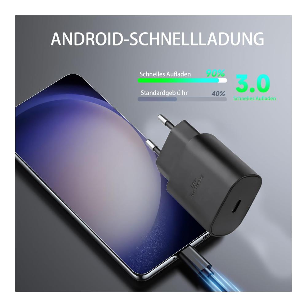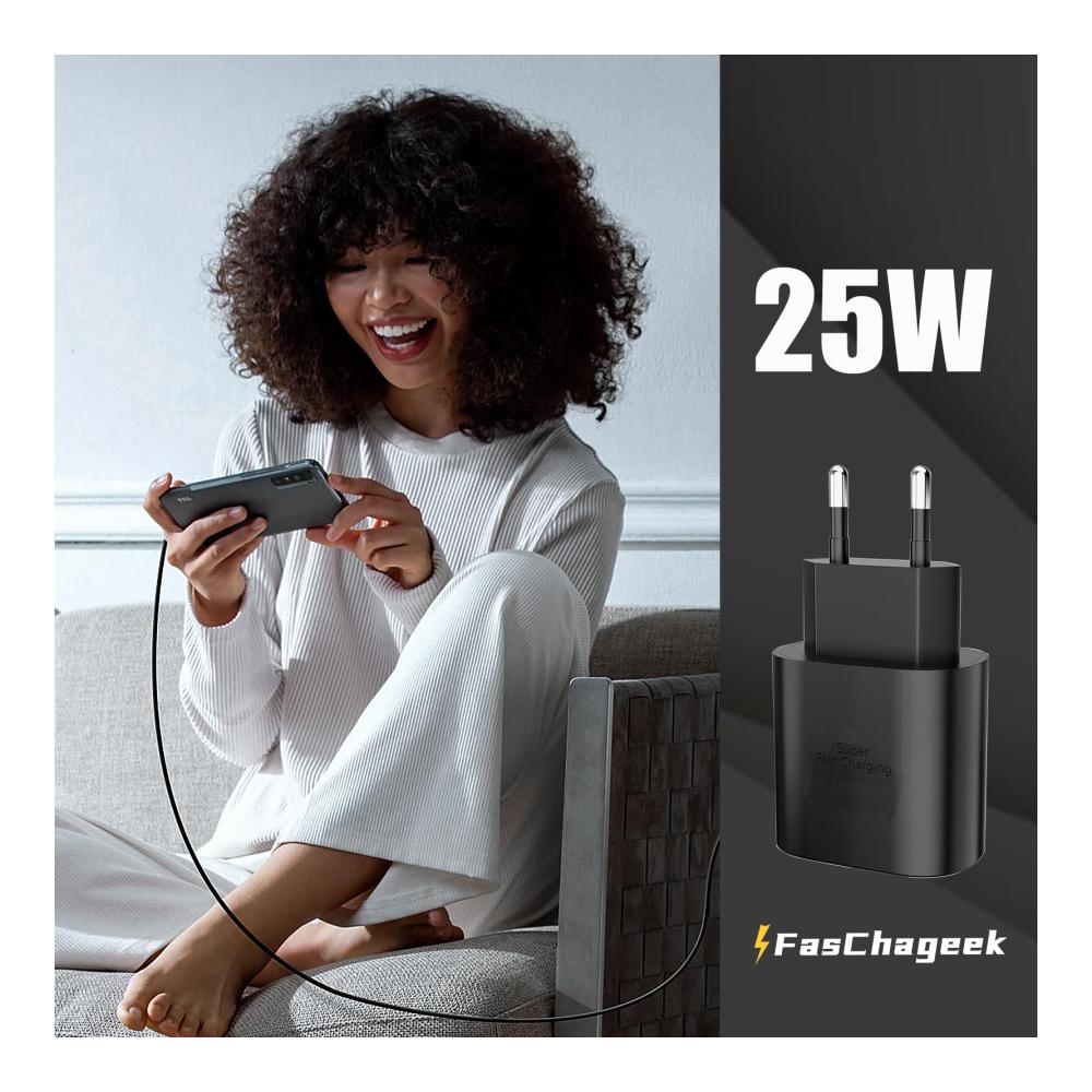 - USB-C-Schnellladegerät mit 25 W: Leistungsstarkes 25-W-Ladegerät.