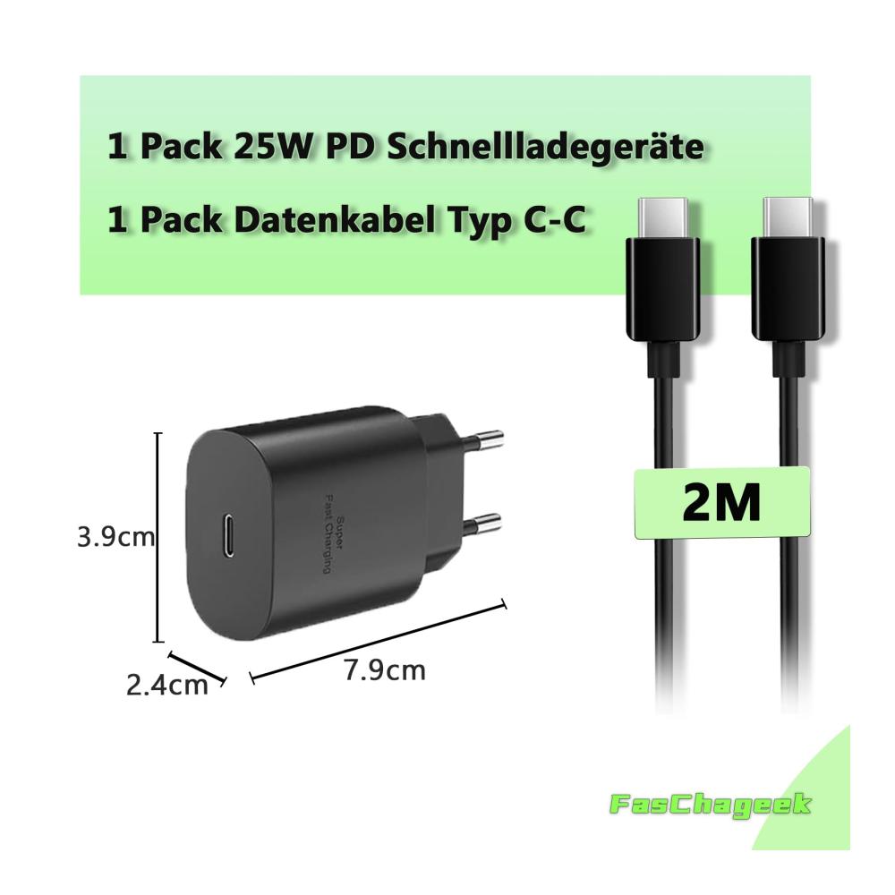 Enthaltene Komponenten: 1 * 25W Schnellladegerät, 1 * 2M Schnellladekabel
