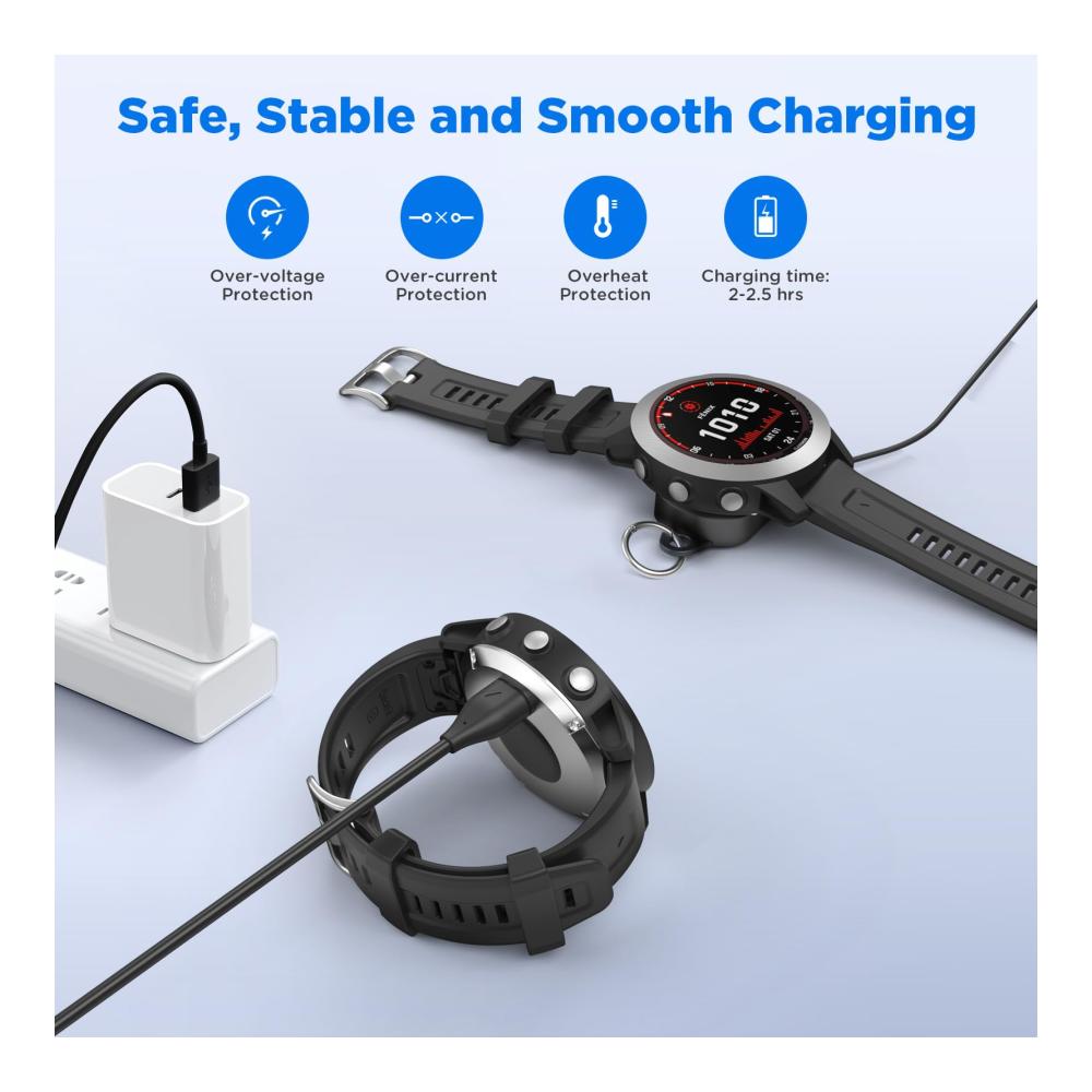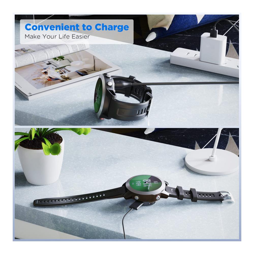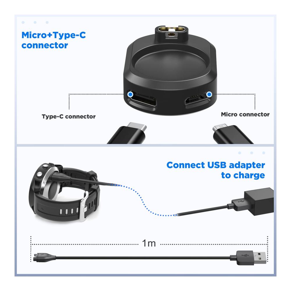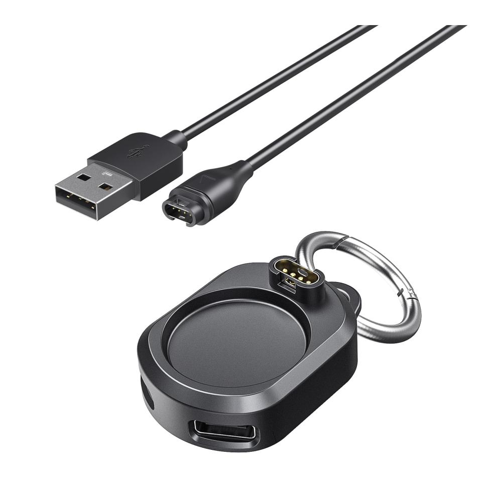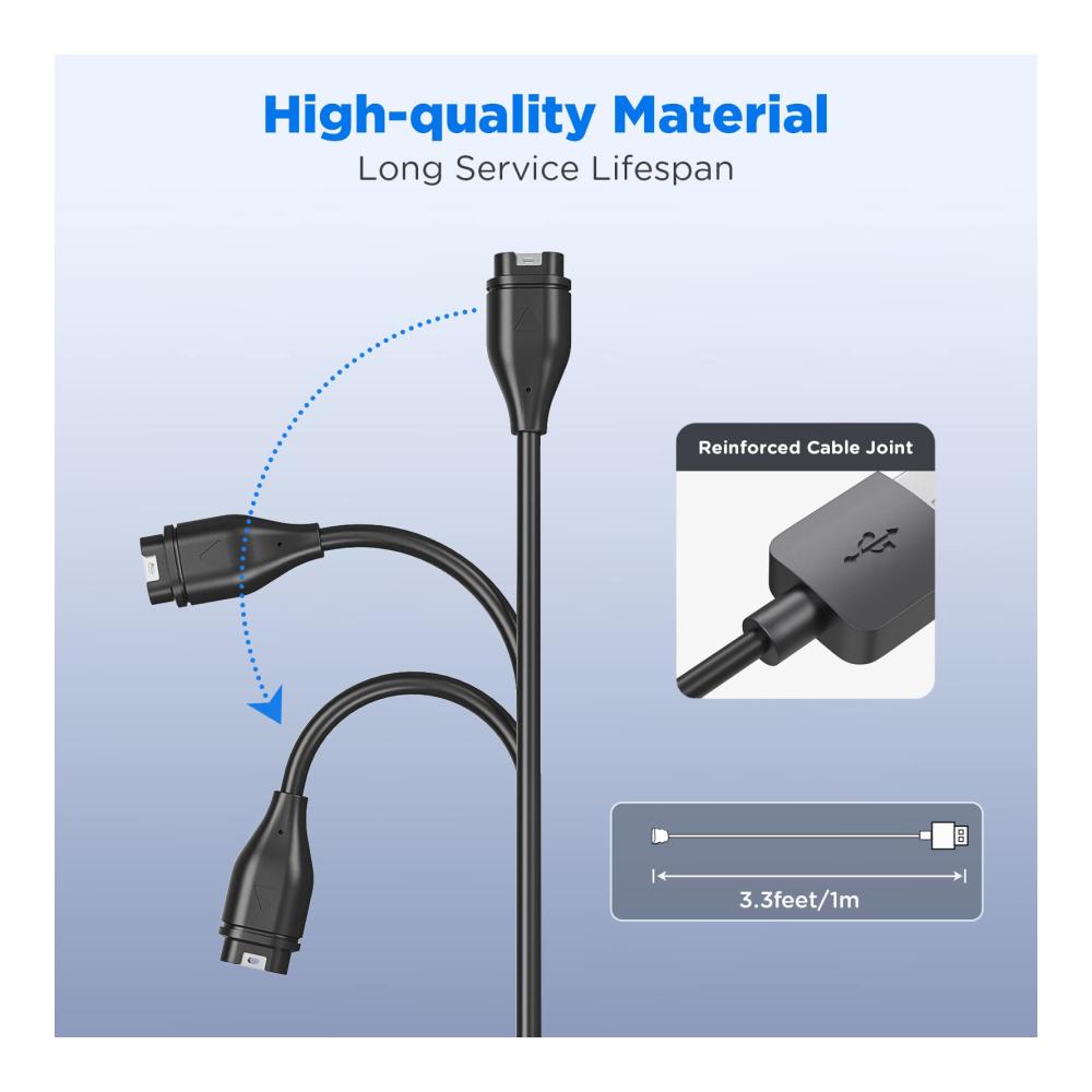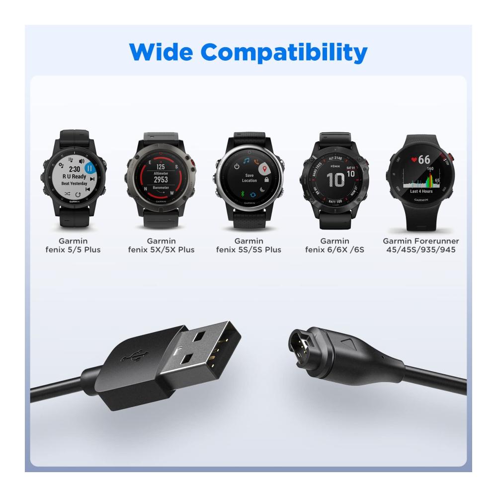 Dieses Ladegerät ist perfekt für alle Garmin Smartwatches. Mit einem Type-C Adapter und einer Ladestation ausgestattet, bietet es maximale Kompatibilität und einfaches Aufladen. Das USB-Ladekabel ist 3,3 Fuß lang und flexibel. Dank des 90-Grad-Designs ist das Kabel bruchfest und langlebig. Klein und tragbar, kann es leicht transportiert werden, ideal für unterwegs. Erleben Sie zuverlässiges Laden für Ihre Uhr, egal wo Sie sind.