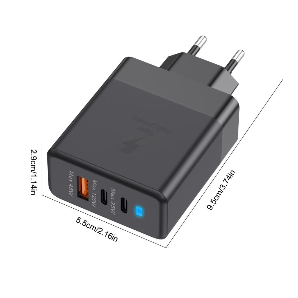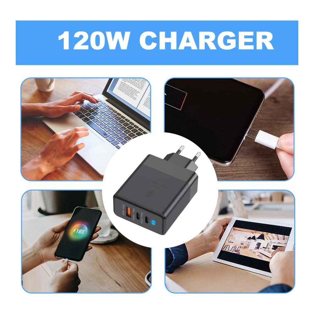 Erleben Sie eine schnelle Ladegeschwindigkeit von bis zu 120 W mit unserem Typ-C-Ladegerät. Dank seines Multi-Port-Ausgangs passt es zu verschiedenen elektronischen Produkten. Dieses hocheffiziente und leicht mitzunehmende Ladegerät ist die perfekte Lösung für alle Ihre Ladeanforderungen.