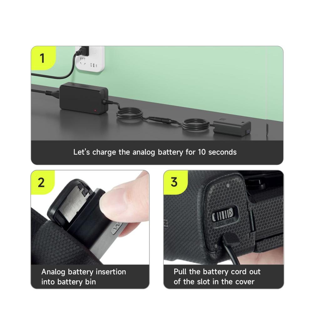 【USB-Typ-C-Stromversorgung】Wir bieten zwei Optionen für die Stromversorgung an: ① Schließen Sie den EU-Stecker-AC-Adapter direkt an eine Stromquelle an; ② oder verwenden Sie ein Typ-C-Adapterkabel, um eine Dummy-Batterie anzuschließen.